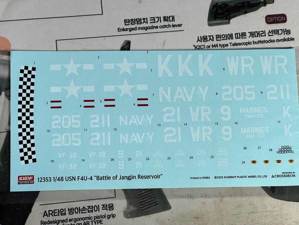 아카데미에서 새로 출시할 예정인, 장진호 전투 참가 기체 코르세어입니다.