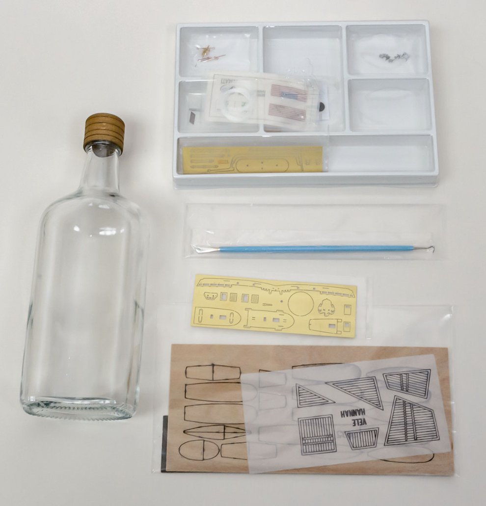 박스는 크지만 유리병을 안전하게 보호하기 위해서이고, 1/300 스케일 특성상 배를 만드는 부품 수는 매우 적습니다.