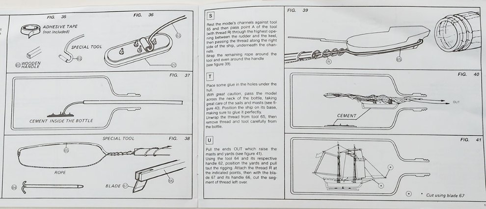병속의 배의 핵심인 돛대를 접어서 병 안에 넣고, 그걸 다시 펴는 메커니즘 설명입니다. 유튜브 상으로 꽤 많은 제작기가 올려져 있으므로 참고하시면 좋습니다.