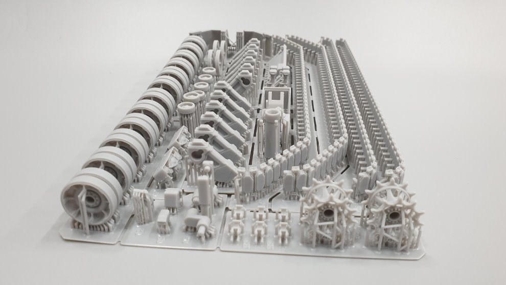 저 많은 궤도들은 모두 한번에 출력되어 단 두개의 부품으로 상단, 하단 결합만 해주면 됩니다.