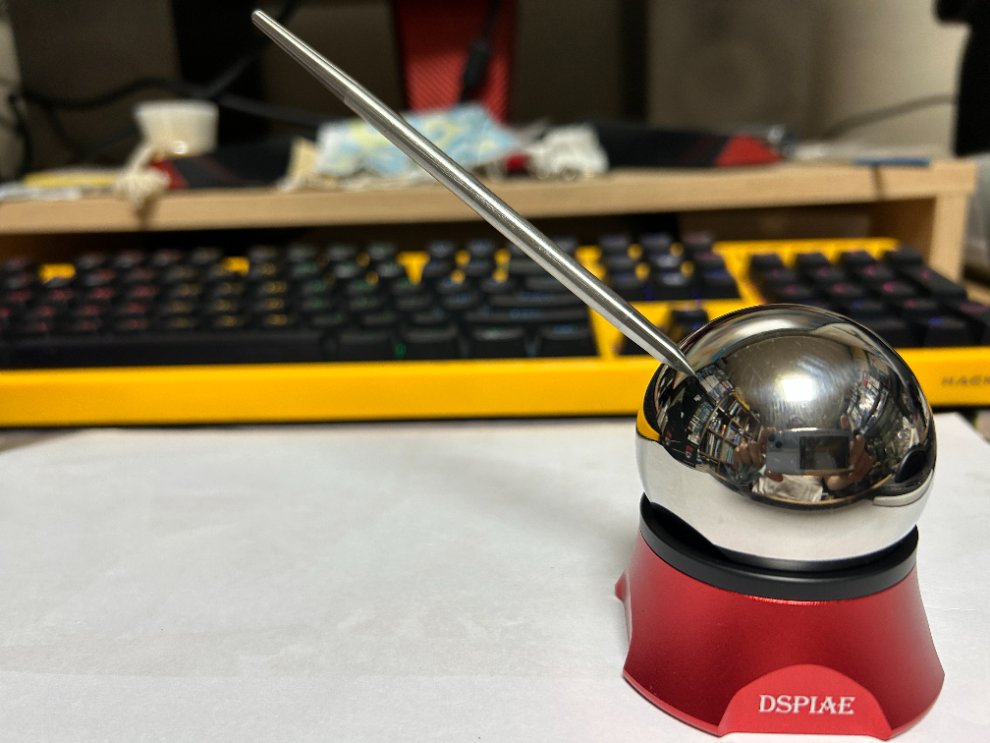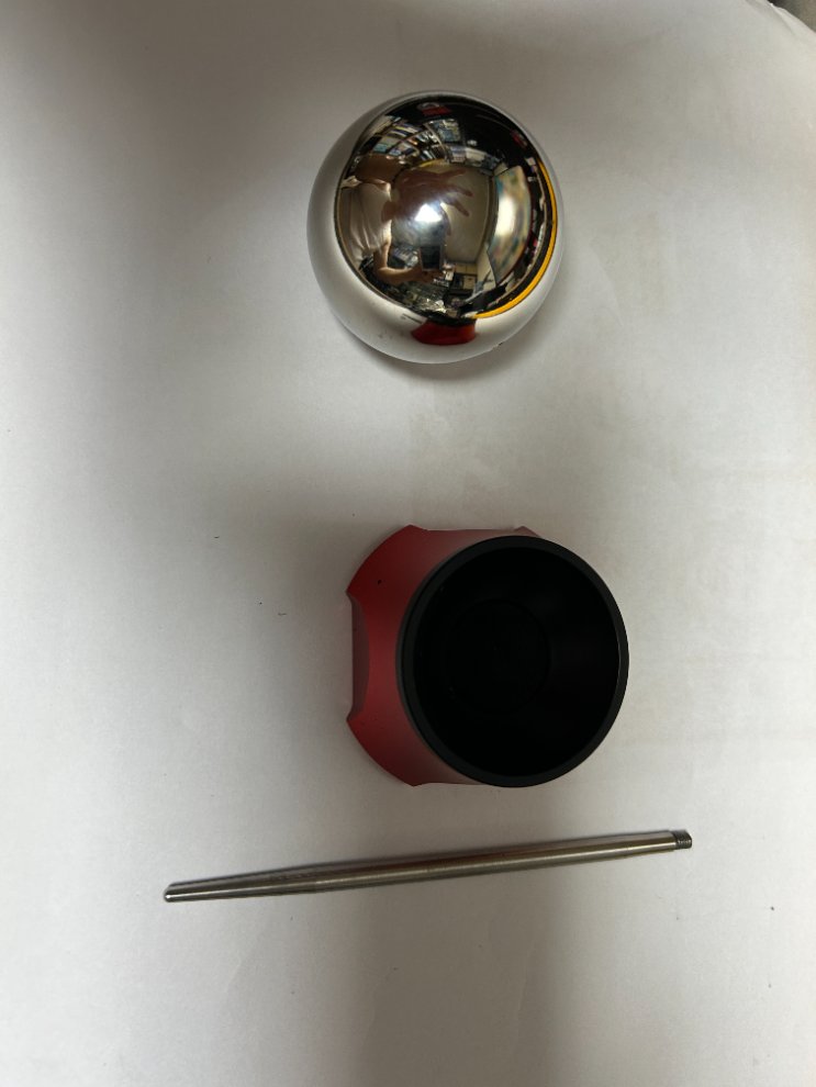 뚜껑을 열면 아래와 같이 받침과 스뎅으로 만든 구형 쇠공 그리고 스텐 봉으로 구성되어 있고