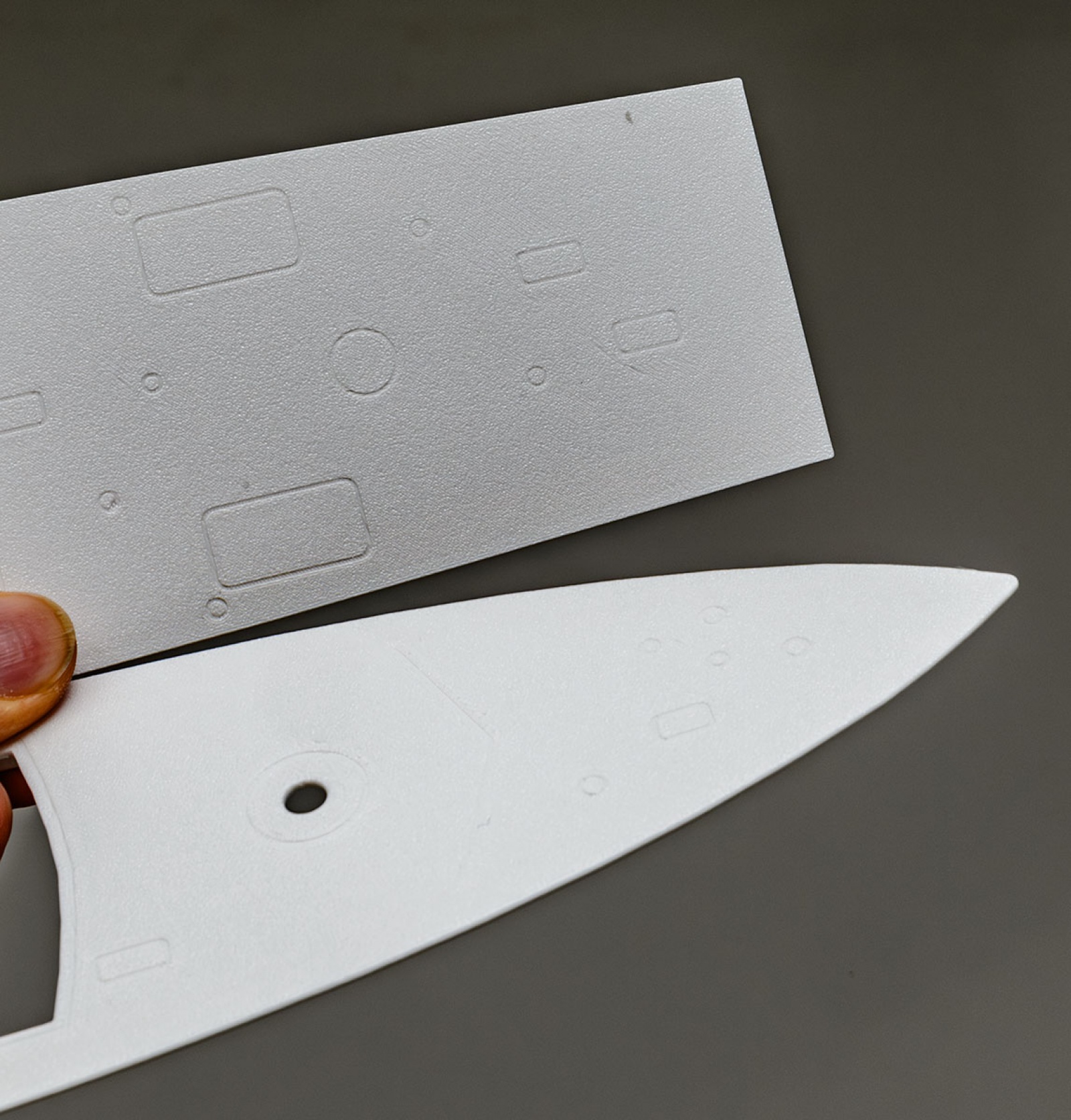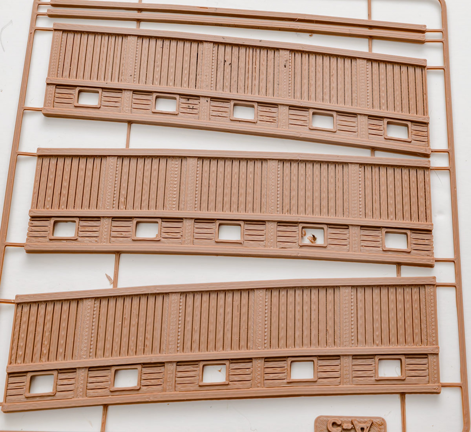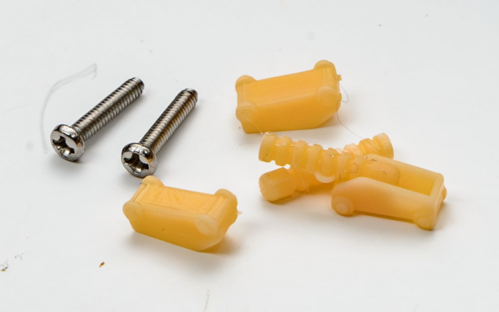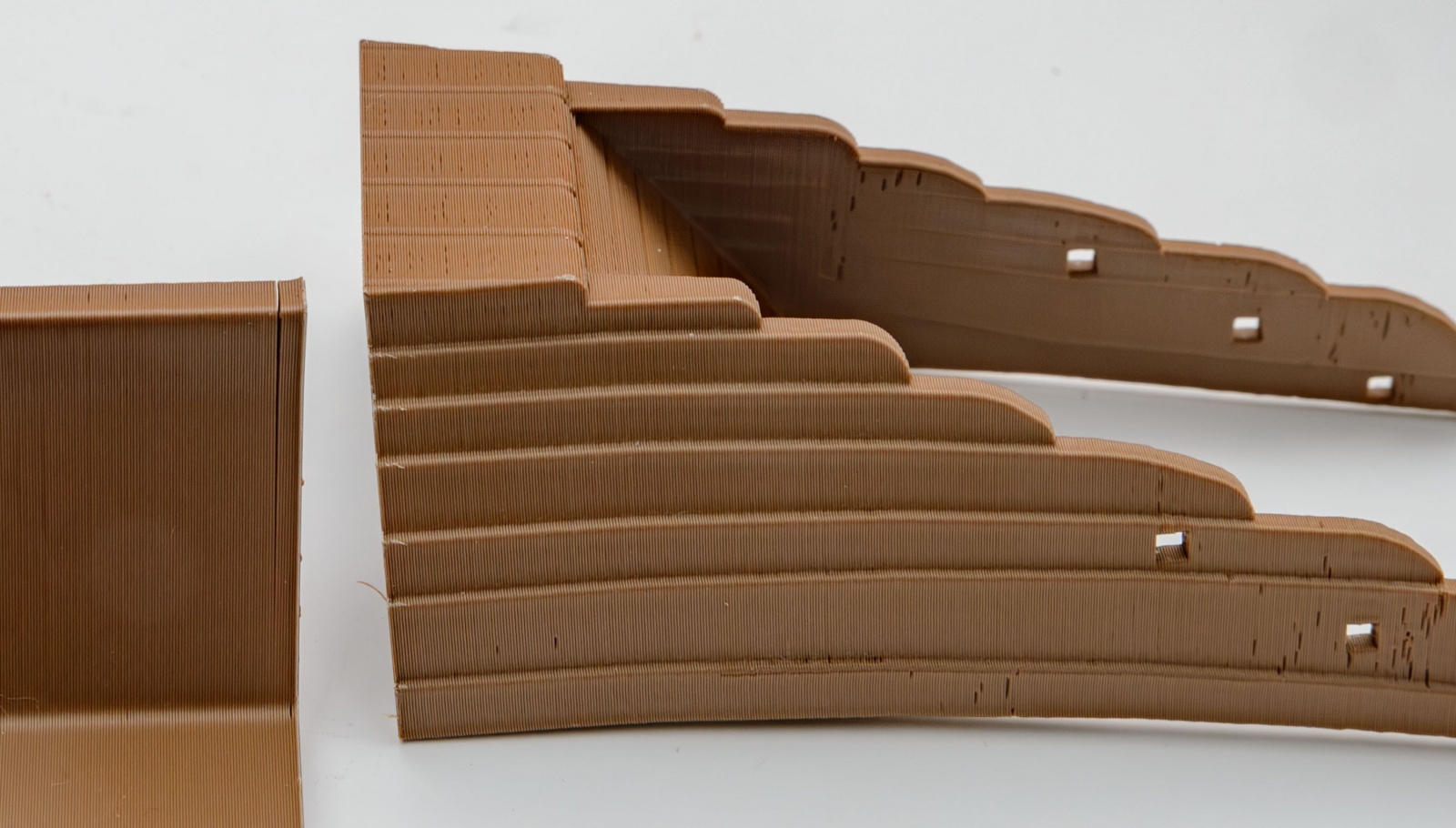 부품을 자세히 보면 품질이 안 좋은데, FDM 3D 프린터의 전형적인 단점입니다. 보다시피 적층 무늬 때문에 표면이 매끈하지 않고, 출력시 결함으로 갈라짐도 생겼습니다. 갈라진 부분은 접착제로 들뜨지 않게 붙이고 표면은 퍼티로 매끄럽게 만들어야 하는 등 부품을 손질하느라 손이 많이 갑니다.