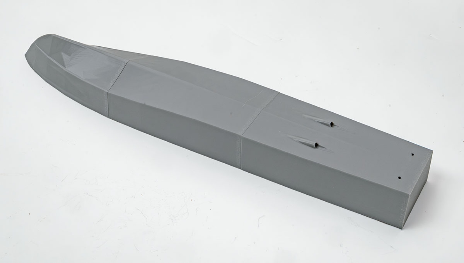 선체는 두꺼운 부품 3개를 붙입니다. 따로 기계적인 결합부는 제공되지 않으므로 순접으로 붙이고 이음새 부분에 보강재를 덧붙인 후 퍼티로 외관을 말끔히 해야 합니다.