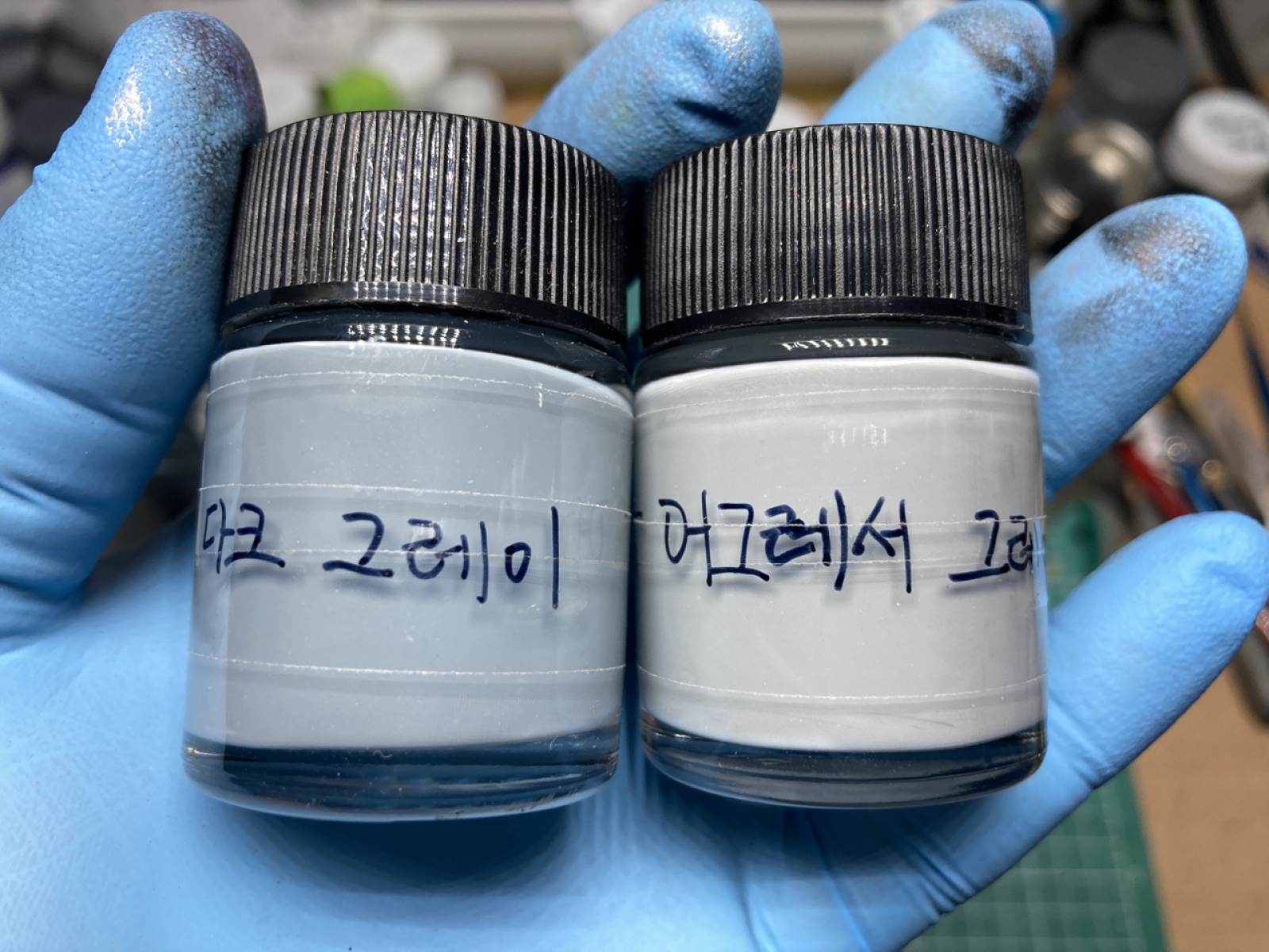 제가 조색한 어그레서 그레이 색상이 좀 더 푸른기운이 강하네요.