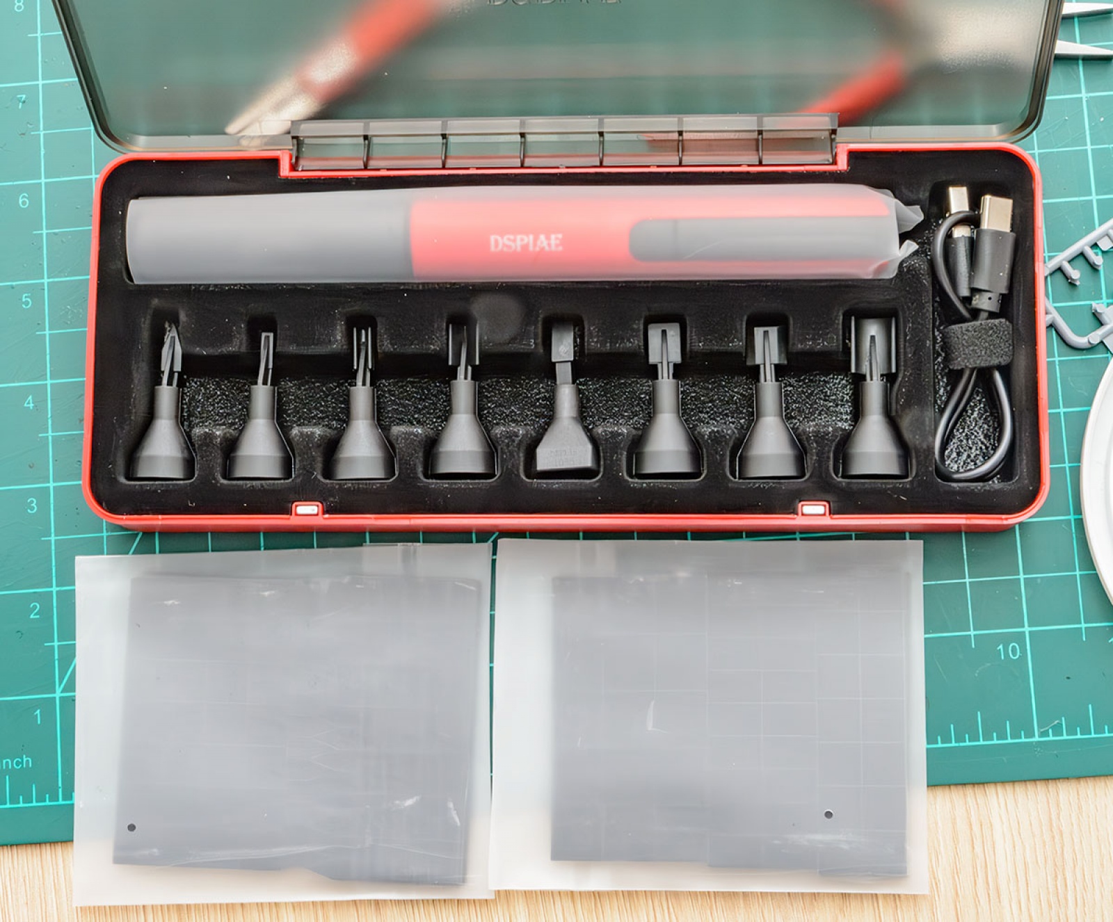 총 8 종류의 사포 헤드가 보입니다. 이래서 전용 공구박스가 필요합니다. 없으면 굴러다니다가 잃어버려도 못 찾습니다.