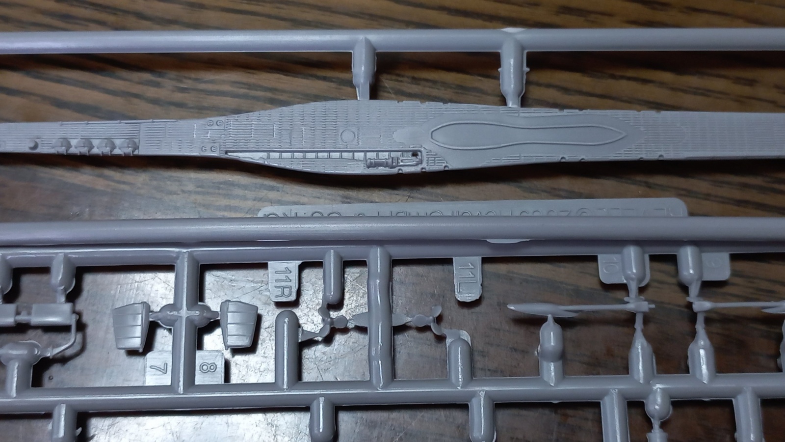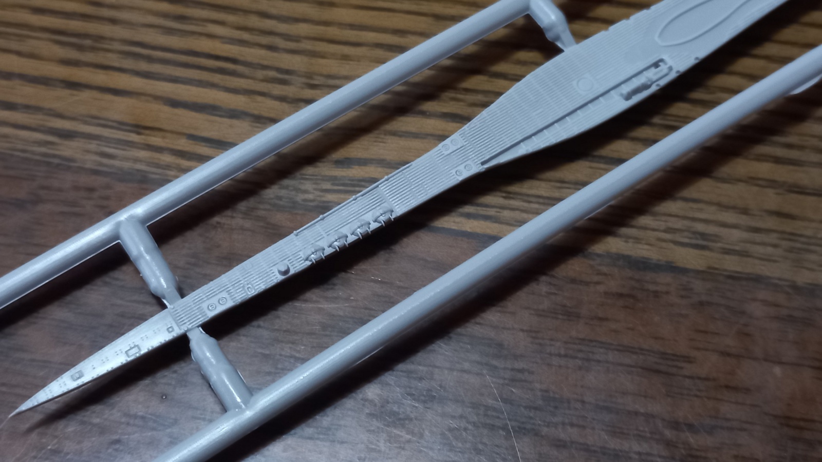 저도 가장 궁금해서 우선적으로 본 함교 런너... 제 기준에서는 1/350 스케일에서 저 정도 인젝션 난간이면 그리 나쁘지 않아보이네요.