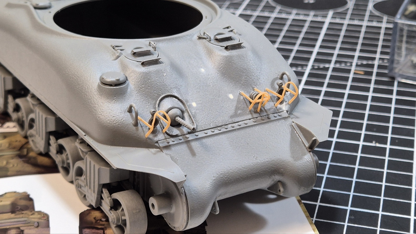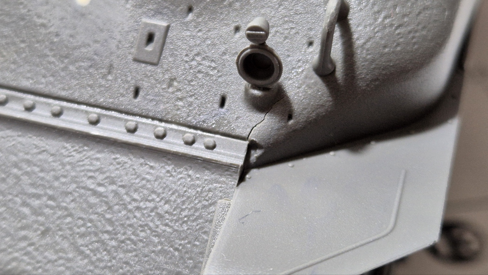 저는 조립도중 아이들러휠과 차체 상부가 깨지는걸 경험하고 뒤로는 너무 꽉 끼지 않게 다듬어가면서 조립했습니다.