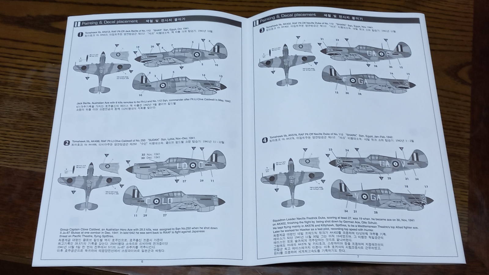 작례도 아주 예쁜데 작례에서도 하비크래프트 P-40 시리즈 특유의 낮은 주익 각도가 눈에 띕니다... 만! 정작 에어픽스 작례를 보아도 사진의 각도 때문인지 아주 큰 차이는 없어보이더군요. 정 안되면 제가 조립하면서 날개각을 최대한 수정해보려고 합니다.