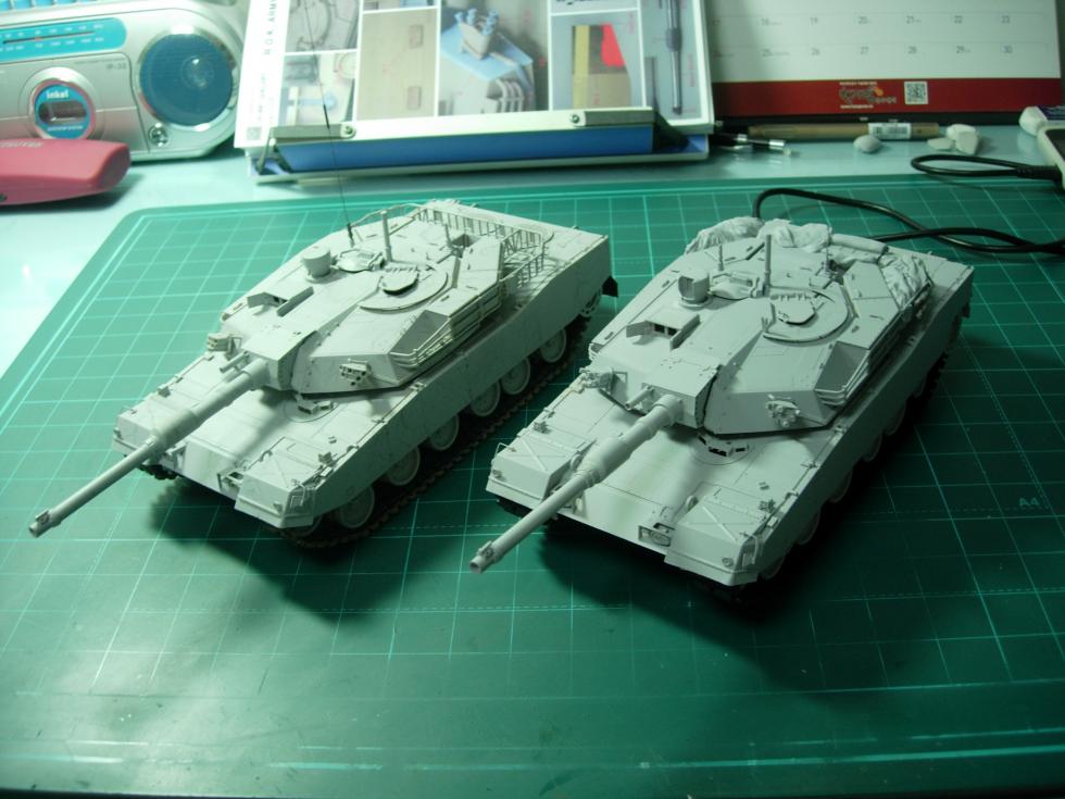 (왼쪽은 아카데미 K1A1이며, KA-Models의 별매 에칭, 트럼페터 별매 궤도 + α를 적용하였습니다.)