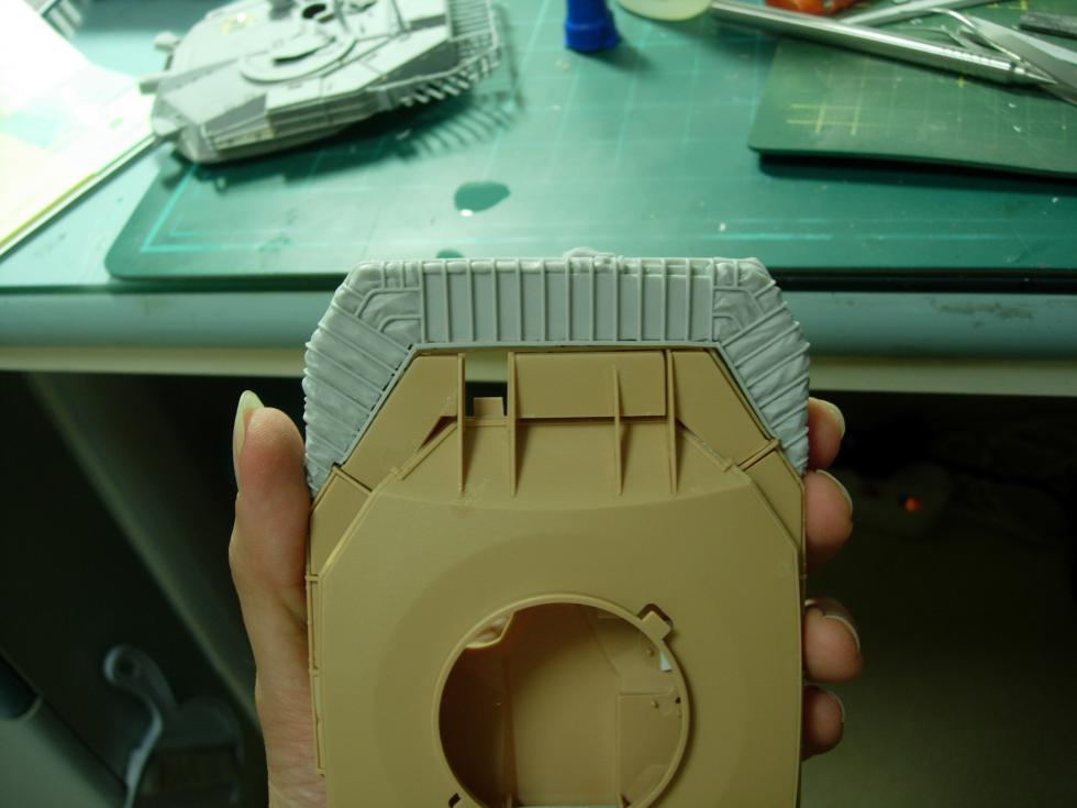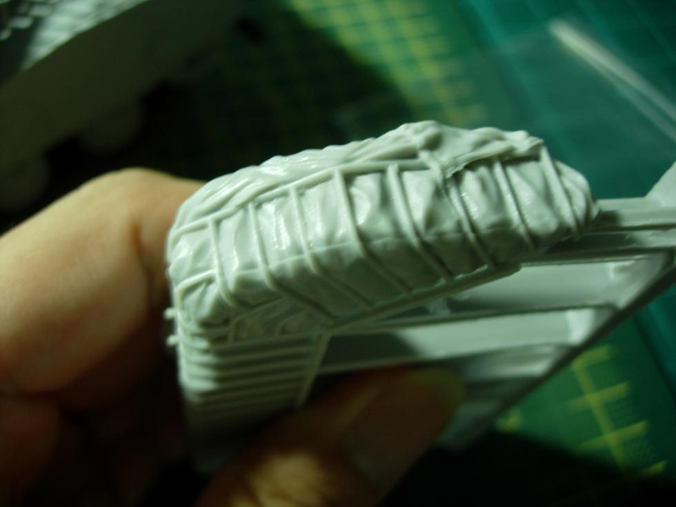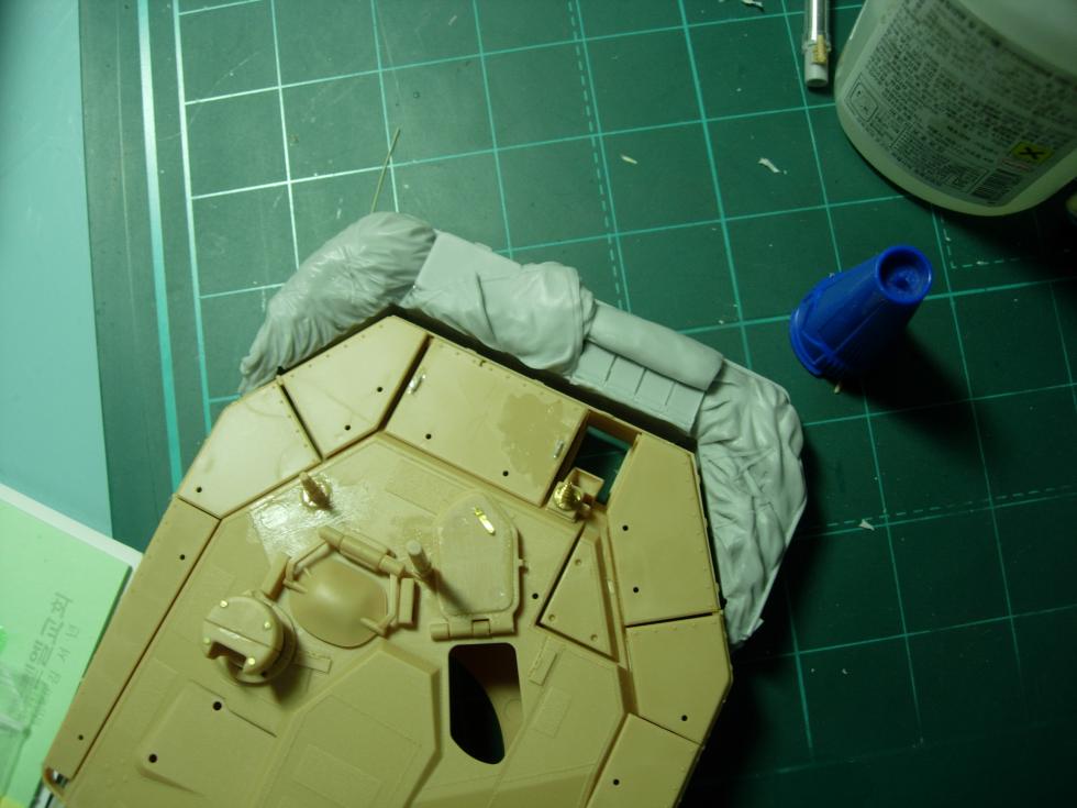 일체형 레진 바스켓 부품(?)은 실제 사이즈보다 좀 더 크게 사출되어서 틈을 메우는 겸 퍼티로 살짝 눈속임을 해 주었습니다.