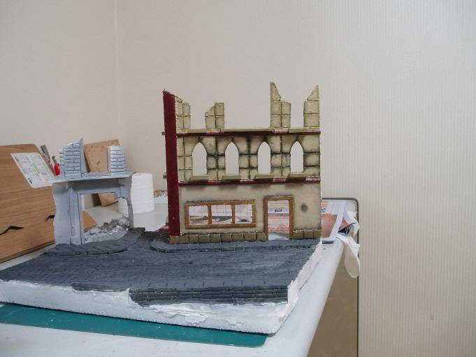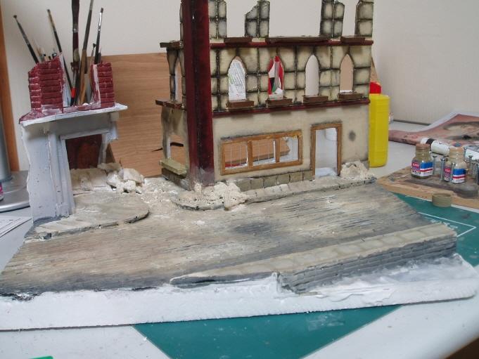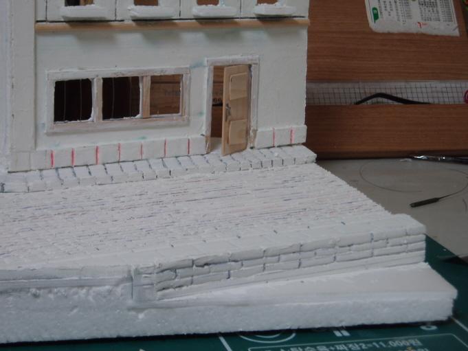 중간중간 석고덩어리로 파괴되어 떨어져 나간 건물 파편을 심어줌니다.