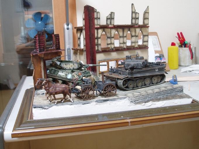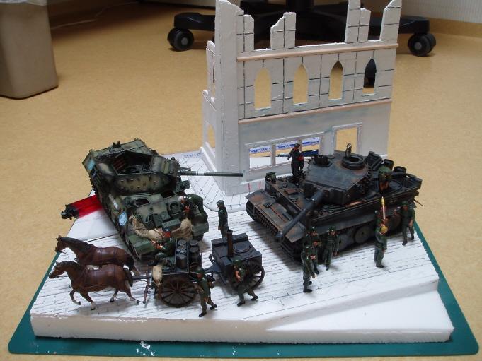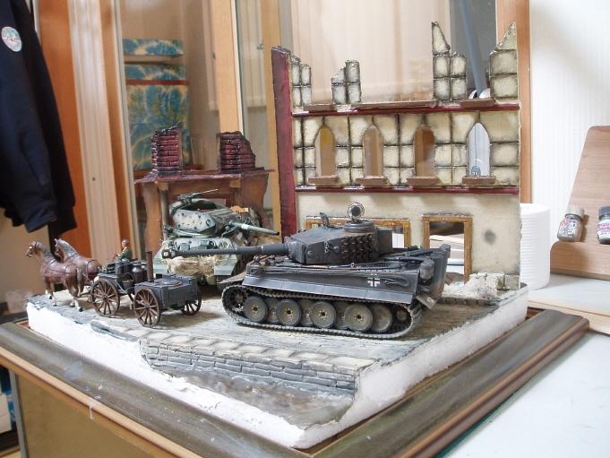 미군전차 M-10은 후진중 뒷 건물에 들이받은 모습이기 때문에 파괴건물과 전차의 크기를