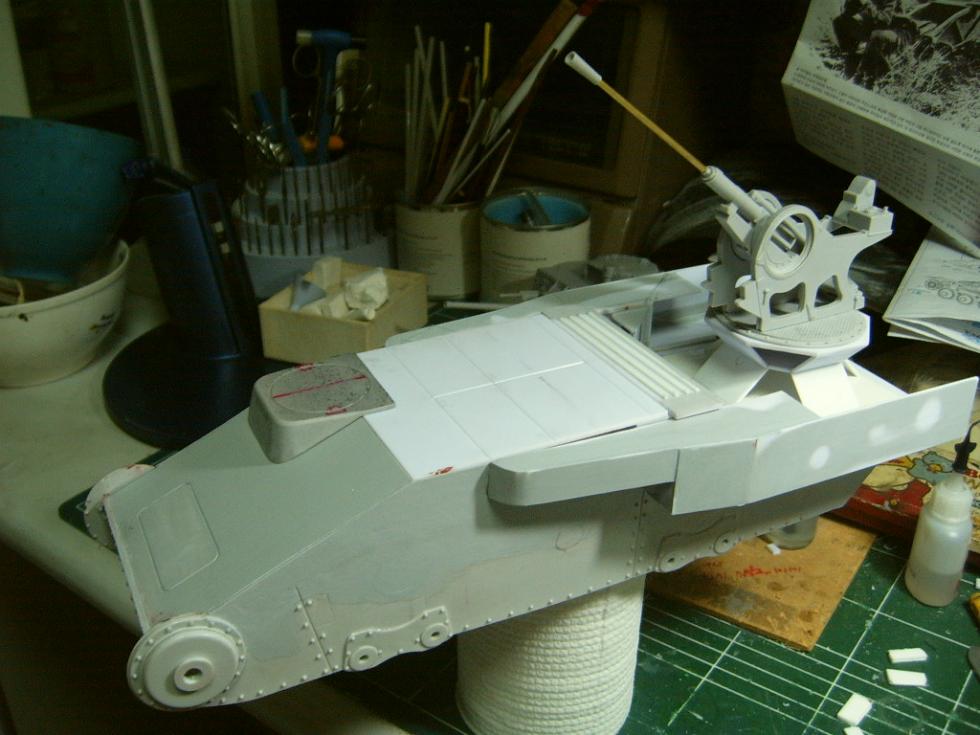 제작의 요지는 Sol모형의 38(T)전차와 벨린덴의 20mm Flak38을 조합해서 Flakpanzer38(T)를 만들고자 하는겁니다...물론 벨린덴 제품이 1/15스케일이기 때문에 크기상으로는 정확하지는 않을듯합니다..그럼 사진 보시겠습니다..