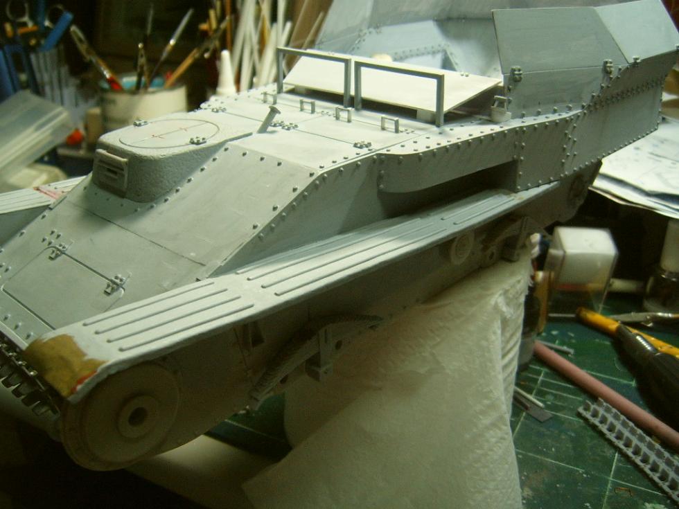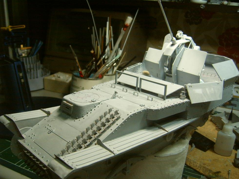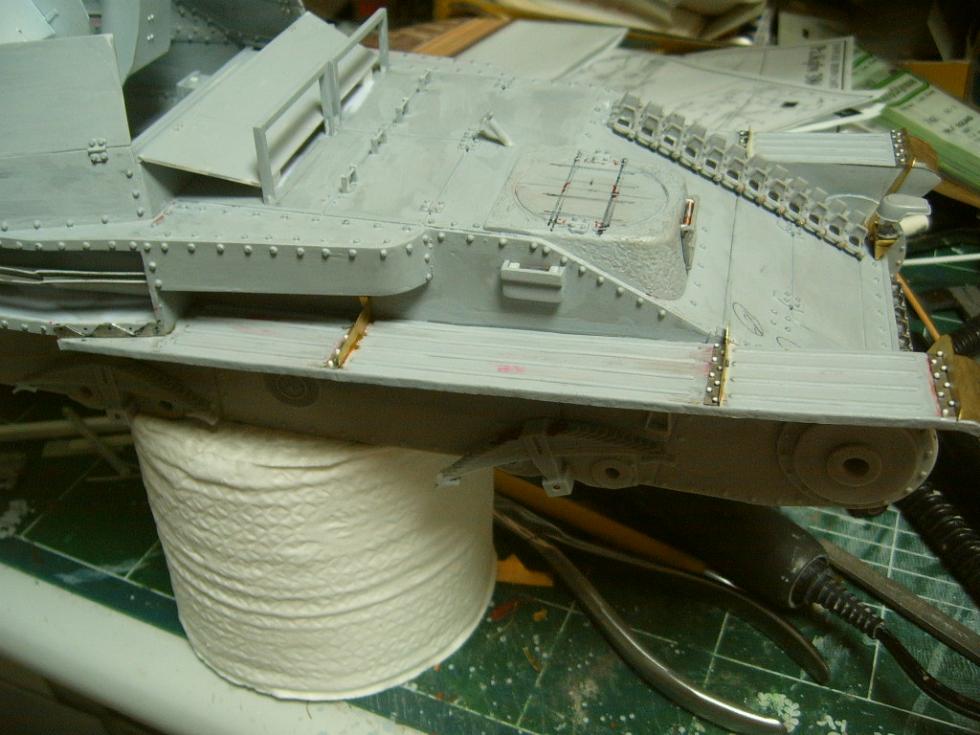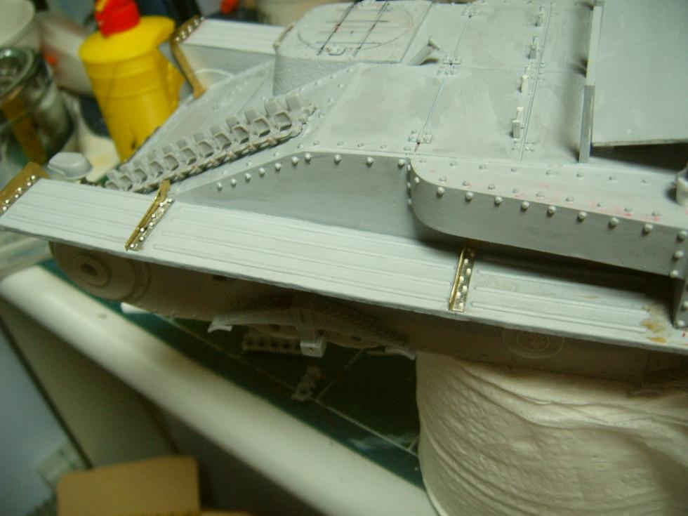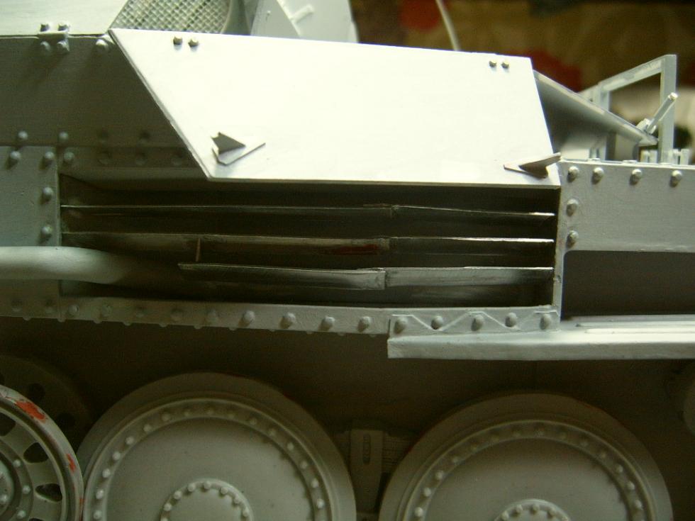 38(T)전차에 에핑으로된 휀더가 있지만 에칭의 한계상 볼륨이 부족합니다..0.3mm 황동판과 에버그린제 반원형 프라봉으로 만들었습니다..