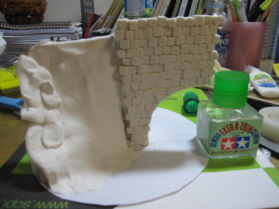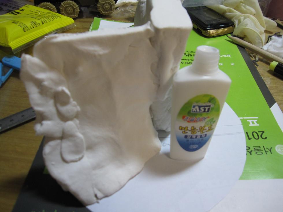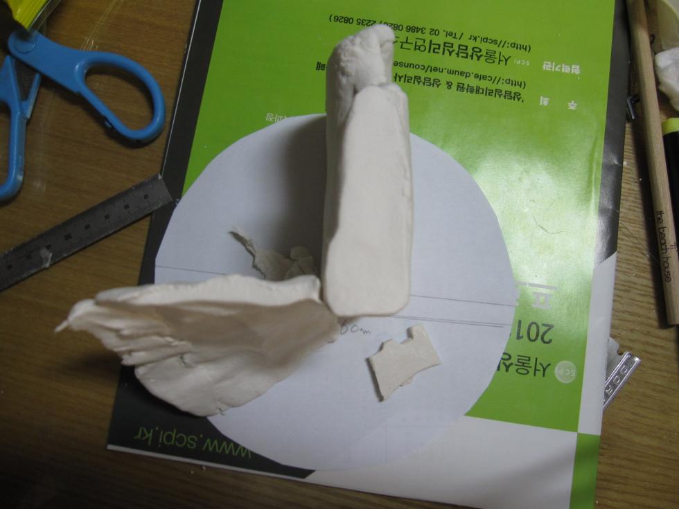 16cm지름 베이스에 지점토, 석고로 기본 틀을 잡아봅니다.