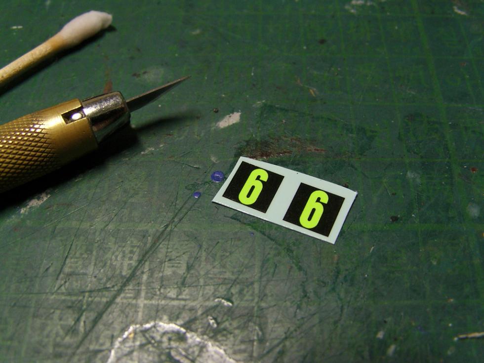 다행스럽게도 데칼들중에, 안쓰이는 데칼중에 형광녹색의 데칼이 있더라구요.. 그래서 그걸 잘라서 모자이크 하듯이 붙여주었습니다.