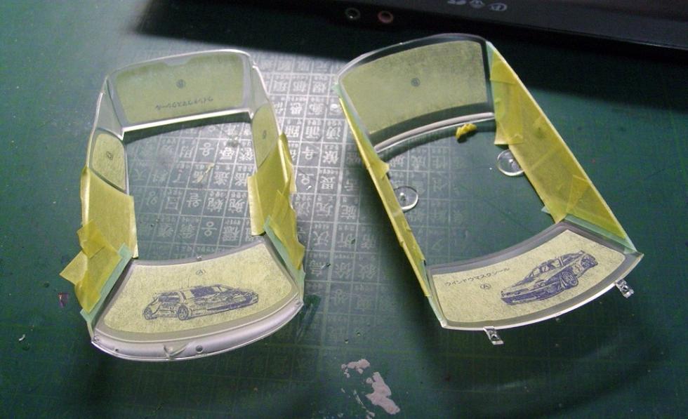 1. 바디 컬러를 뿌린 뒤, 마스킹해서 고무패킹 칠하고, 데칼 및 광택작업이최종 마무리 된 후, 다시 창틀만 마스킹해서 무광혹은 반광으로 표현