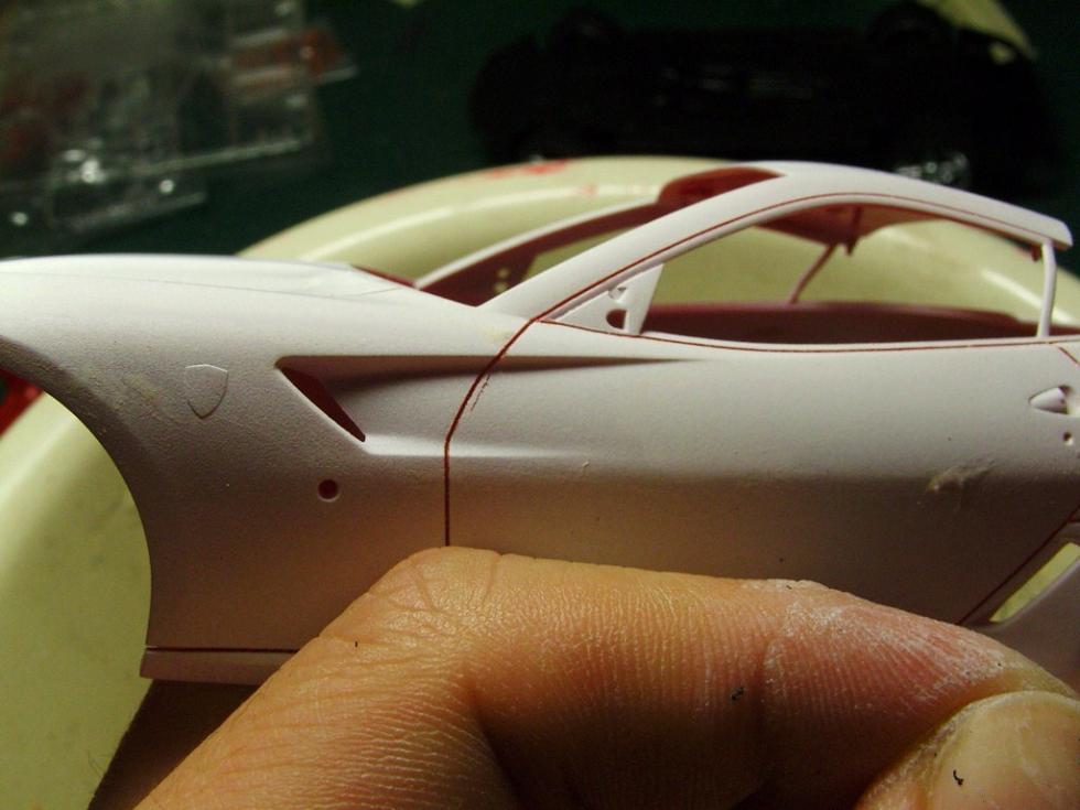 뒤쪽의 +몰드로 있는 페라리 앰블럼도 밀어버렸습니다.(메탈트렌스퍼를 사용하기위해)