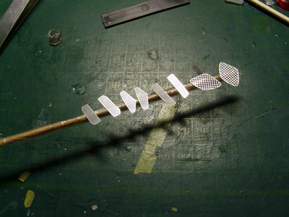 에칭 그릴들. 이것들은 검정으로 칠하기위해 산적꼬치에 붙여놓은 사진입니다.