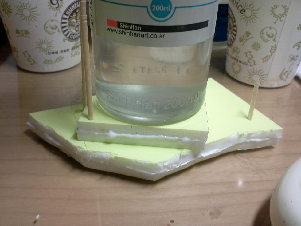 적당한 크기로 잘라 두장을 목공본드로 붙혀줍니다 이쑤시게로 고정