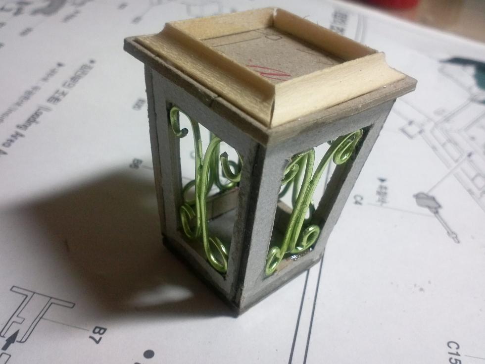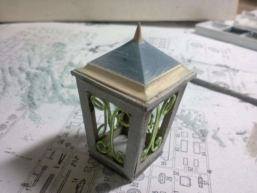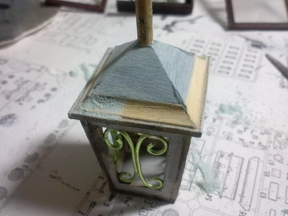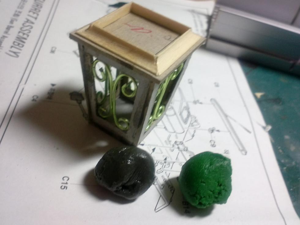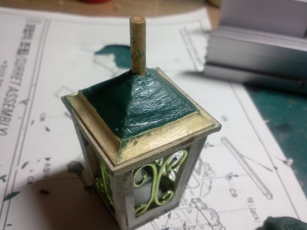 에폭시 퍼티로 가로등의 지붕부분을 만들어 줍니다.