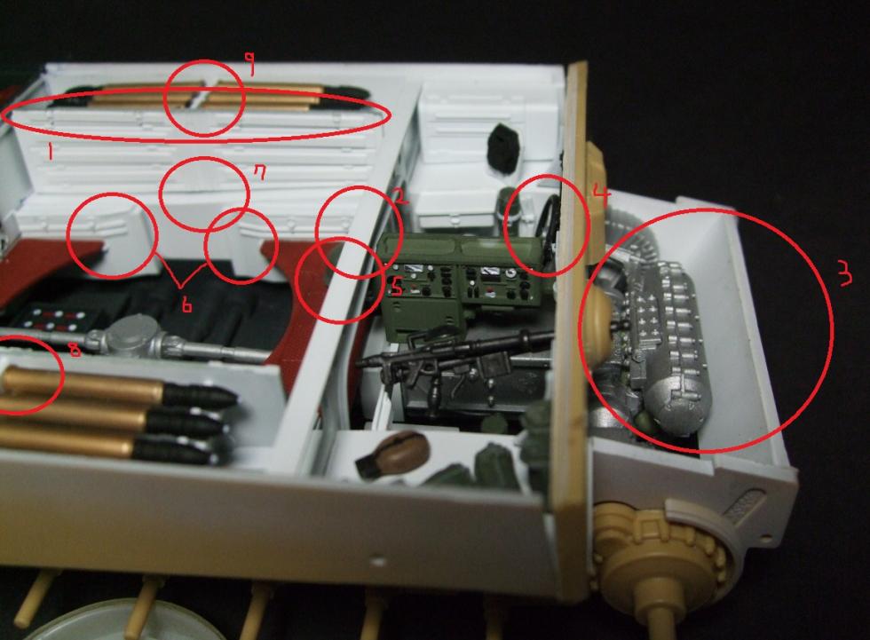 2.9번- 포탄을 걸쳐 두는 부품이 너무 높아서 그 위에 올라가는 포탄이 역시 상판을 간섭하는 일이 생긴다. 이 역시 부품 자체의 보이지 않는 하부를 갈아낸다던가 해서 높이를 낮춰줘야 한다.