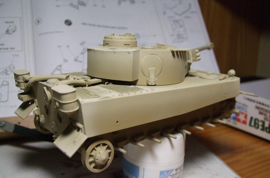 1차 위장 무늬를 3호 에어브러쉬로 그린 상태입니다. 아직은 그런대로 명암의 효과가 보입니다.