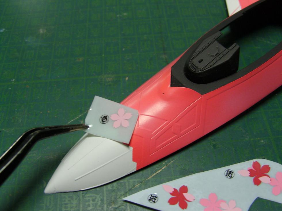 시작이 반이라고.. 노즈에 첫 데칼 을 붙이려고 하고있습니다... 벌써 반정도 한것 같습니다..