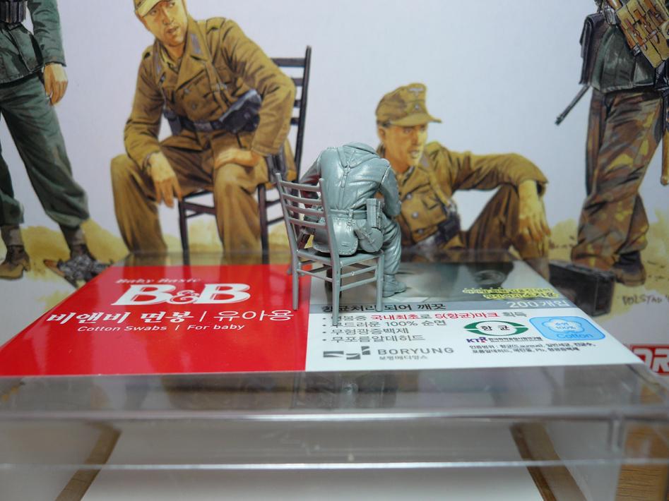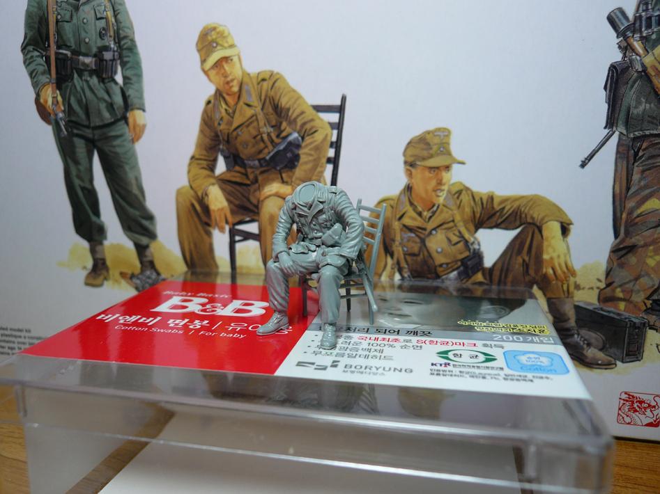 철모를 쓴다면 에칭으로 들어있는 철모끈으로 가리면 되지만 전투모를 썼을 경우는 여지없이 드러나죠..
