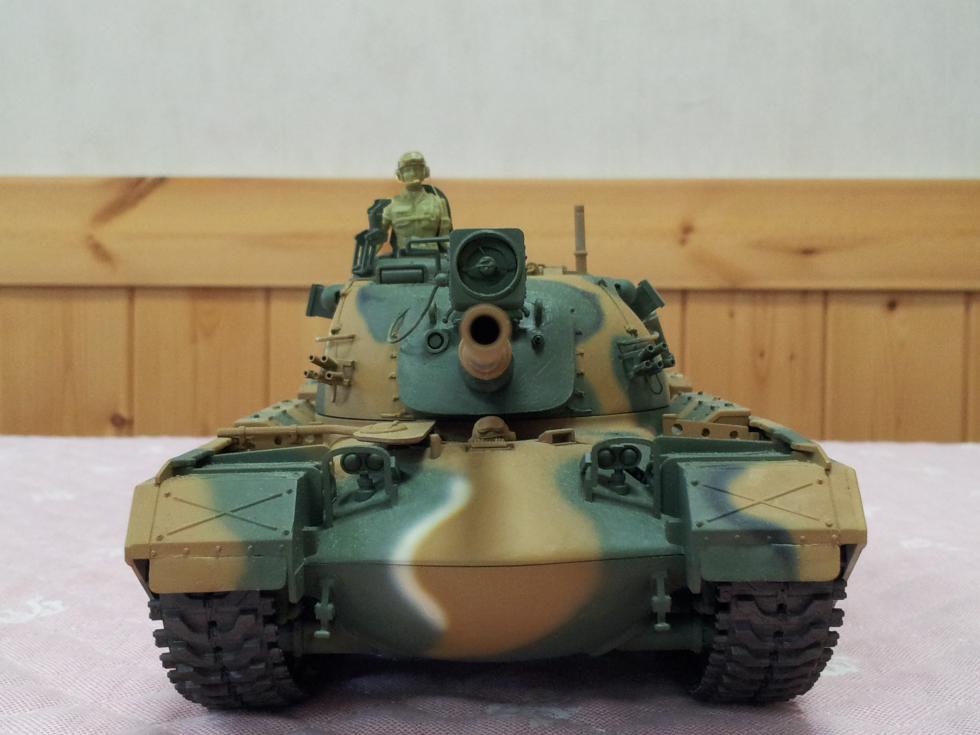 위 아래에서 내려다 본 모습인데, 앞쪽이 조금 돌출된 포탑과 편평하지 못하고 반원처럼 불룩한 포방패의 형상의 문제로 인해 어색한 느낌이 있습니다. 부디 신금형 M48에서는 고쳐지길 바랍니다.. 나름 포방패를 편평하게 보일려고 최대한 평평하게 갈아내고 노력한 결과물입니다.. ('0' )