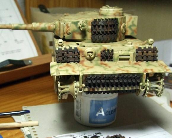 워싱을 가볍게 한번 하고 스페어 트렉을 부착했습니다. 워싱의 결과로 차체 동축기관총 측면의 방수포 커버 거치대가 또렷하게 보이네요.