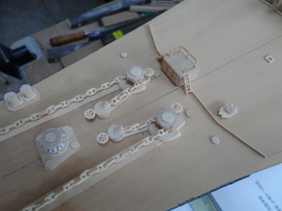 갑판에 설치되는 장비들...윈치,탄약박스,캡스턴과 앵커만들었습니다.
