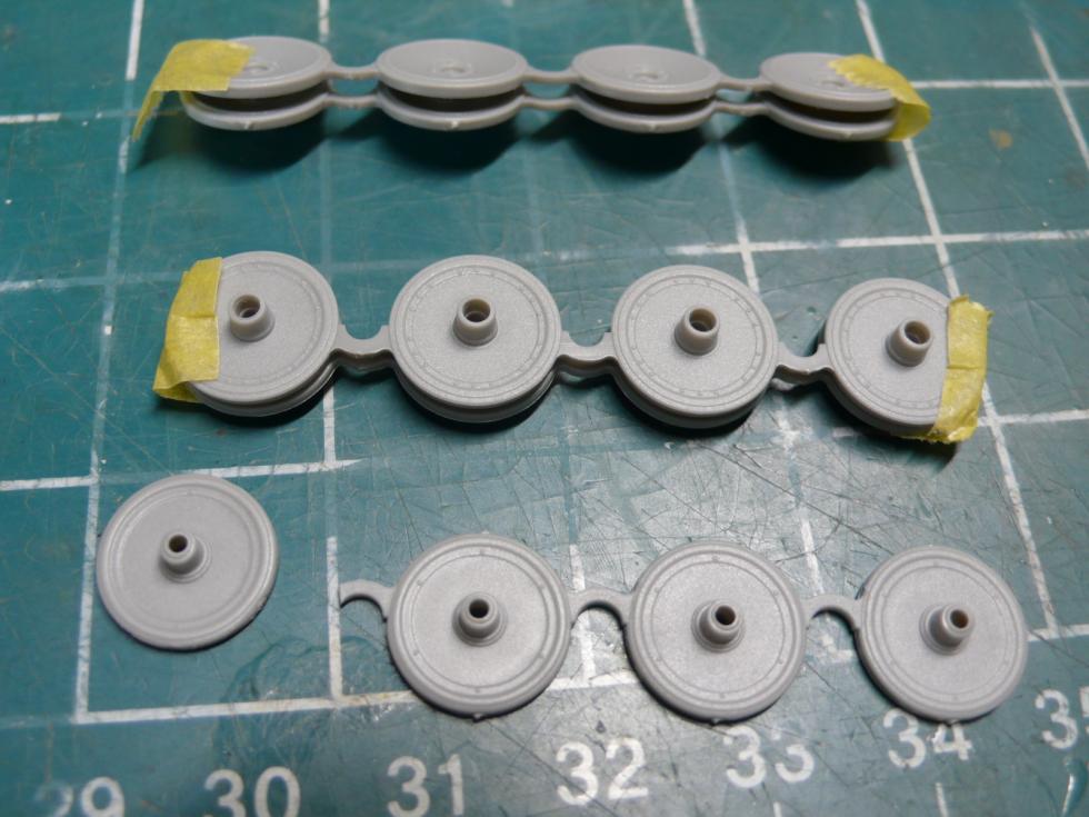 로드휠이 특이하게 이렇게 사출되어 있습니다. 킷 그대로 만들면 참 편한 방식이겠으나 저는 그대로 만들기 곤란하기에