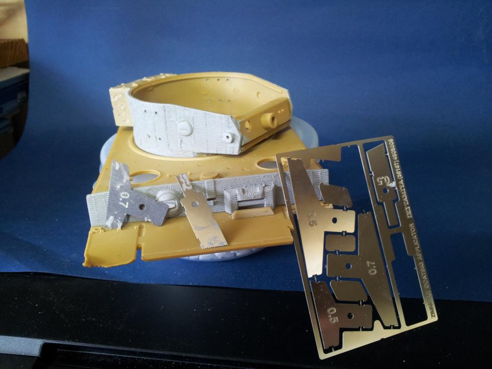 우선 , 긁어야 하니 헤라가 필요해, 프라판은 녹을터이고 얇은 함석판을 줄로 갈아서 톱처럼 이빨을 만들어 쓰면 될것 같아 만들던중, 예전에 구입한 적이 있는거 같아 뒤져 보니 예전 타미야 찌메리팅 전용 헤라를 구입해 놓은게 있더군요 , 오호!!! 심봤다!! 근데 유튜브등 어디에서도 이 헤라를 쓰는것은 하나도 없더군요,, 그래서 정보 수집중에도 까마득이 잊고 있다가 갑자기 생각이 났습니다