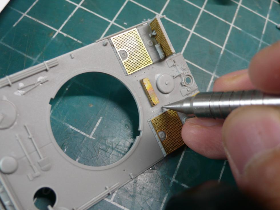 포탑부분은 그냥 라인따라서 무수지 접착제 한번 발라준다음 나이프로 살살 눌러 용접선 표현을 해봤습니다.