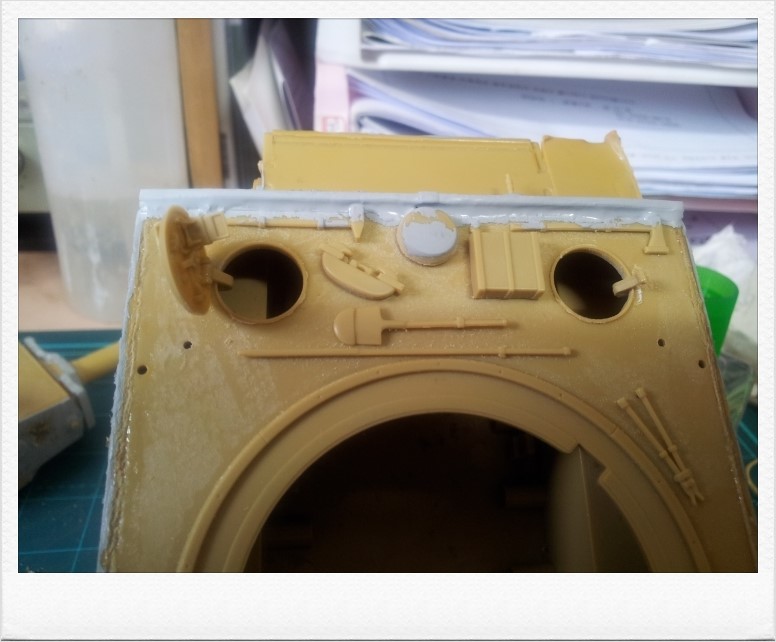 이미 뚜껑을 차체 상면을 접착한터라 쇼를 좀 했습니다