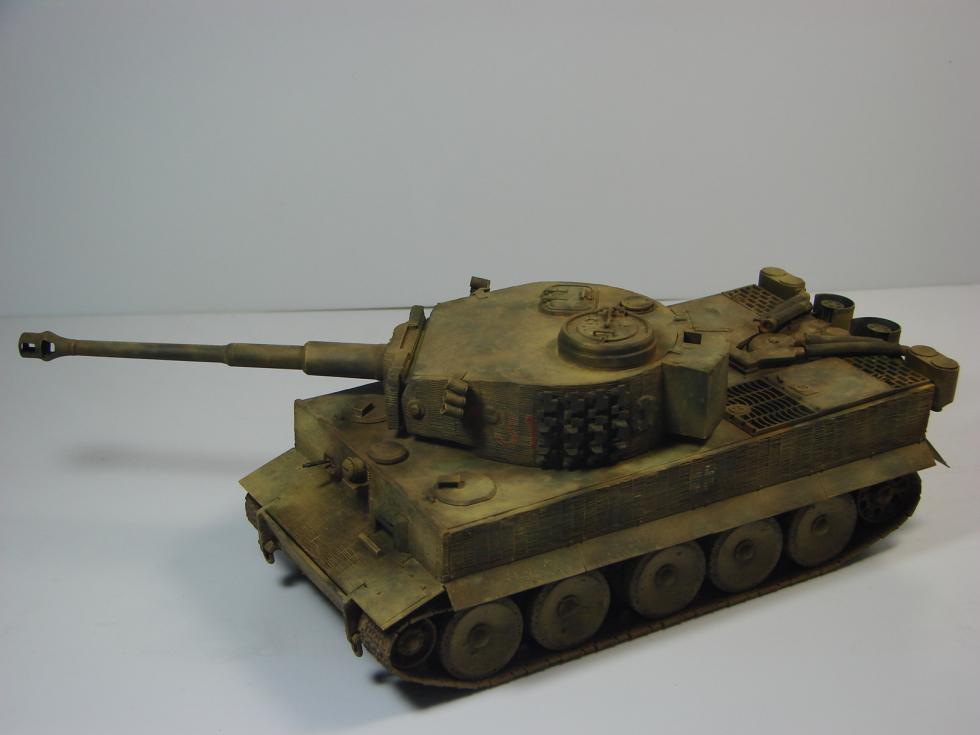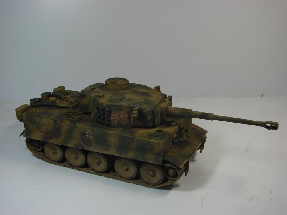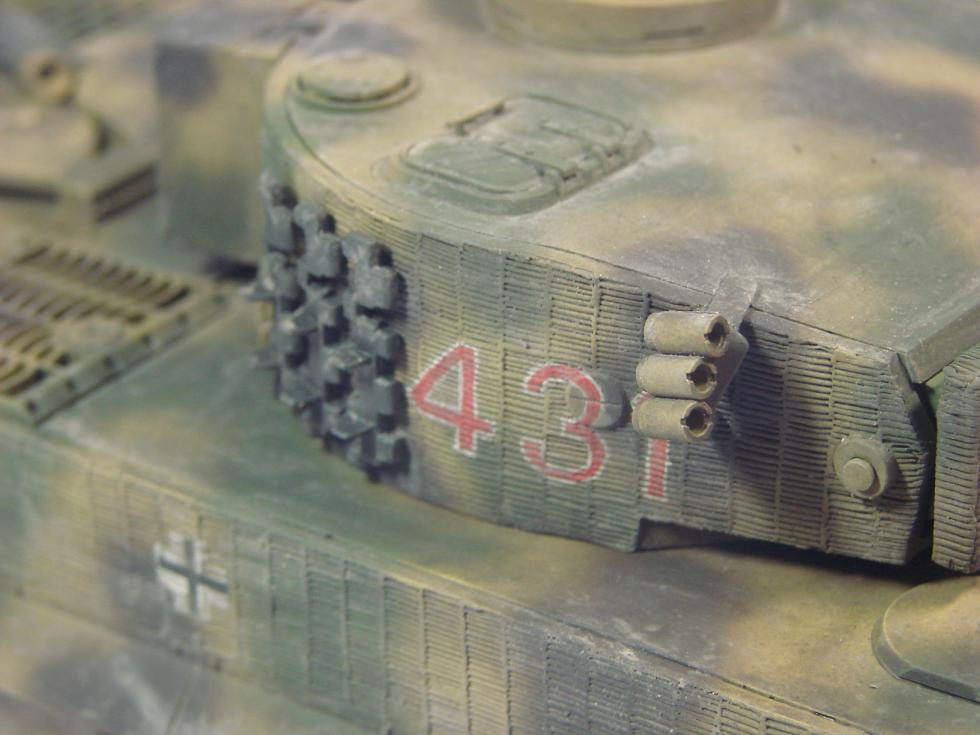 라이언 일병 구하기에는 2대의 티이거가 나오는데, 그 중에 양말폭탄에 주저앉은 431호차로 만들었습니다. 번호는 데칼이 없어서 손으로 그렸습니다.(원래는 아카데미 4호전차를 하나 사서 거기에 있는 데칼을 쓸 예정이었는데, 사러 갈 시간이 없어서...)