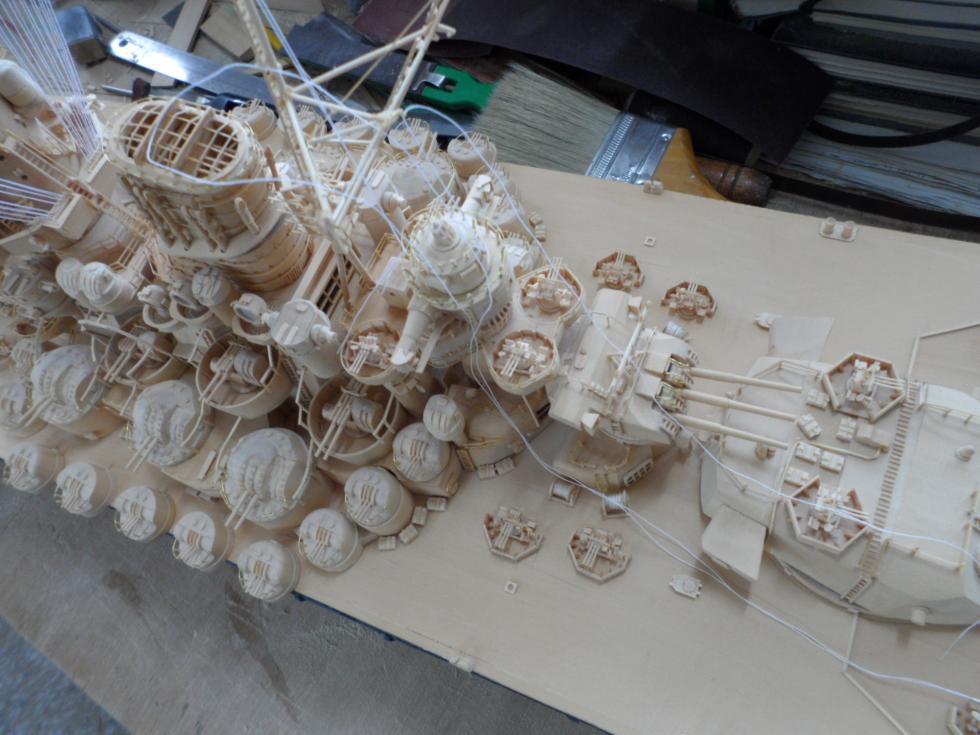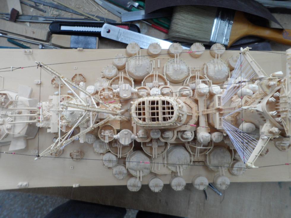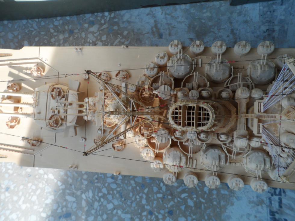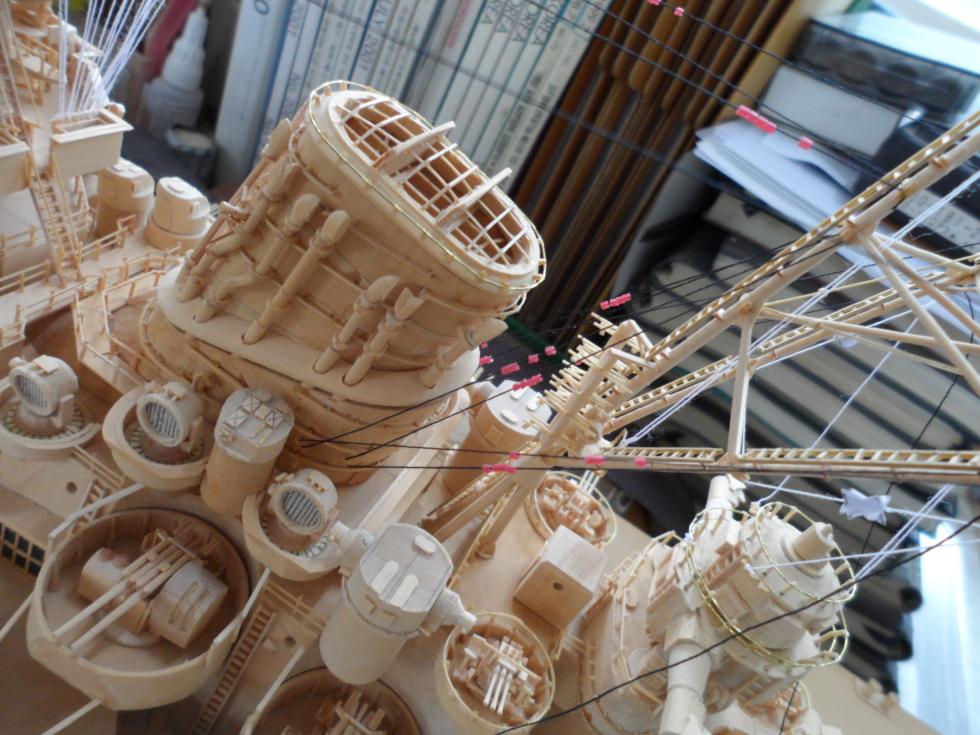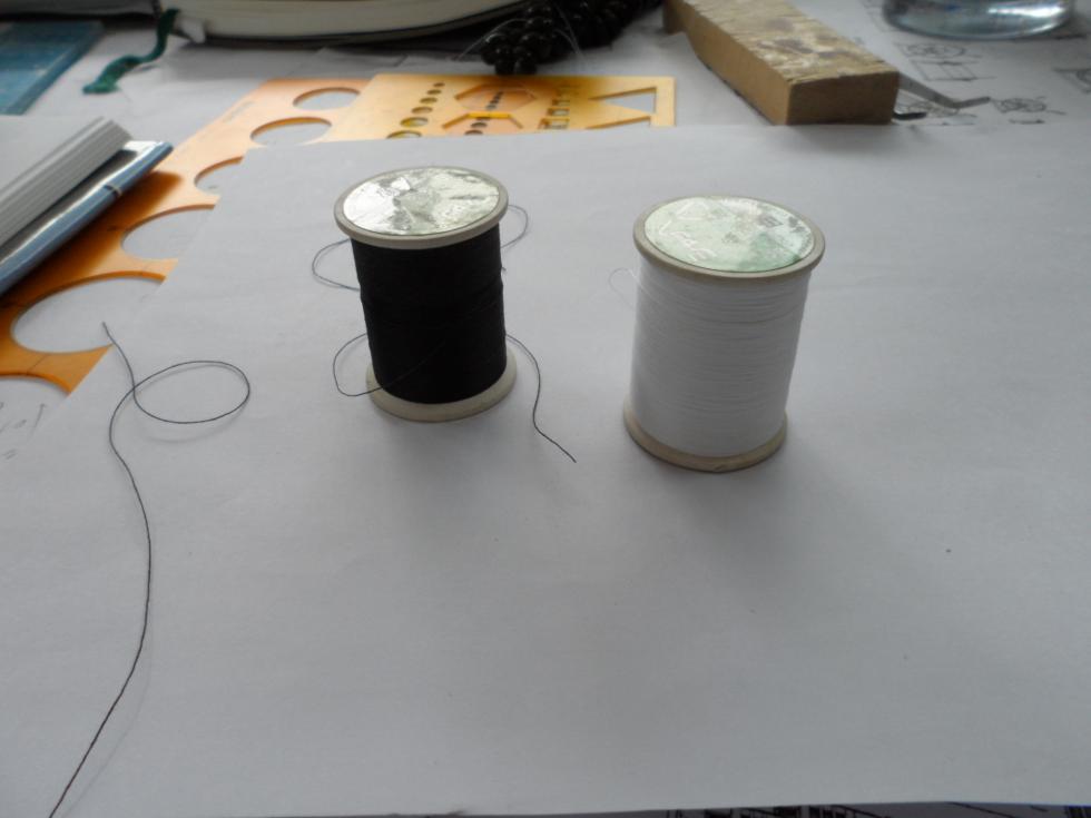 흰재봉실로 신호용밧줄,검은 실로 안테나 스틸와이어등을 표현합니다.