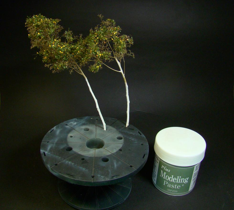 얇은 나무 줄기에 질감과 두께,강도를 보강하기 위해 모델링 페이스트를 몇겹 붓으로 발라주었습니다.