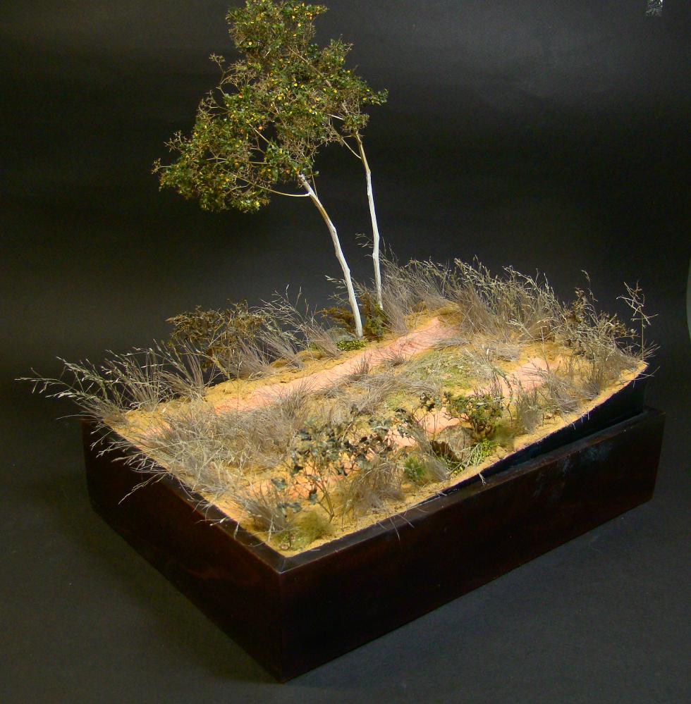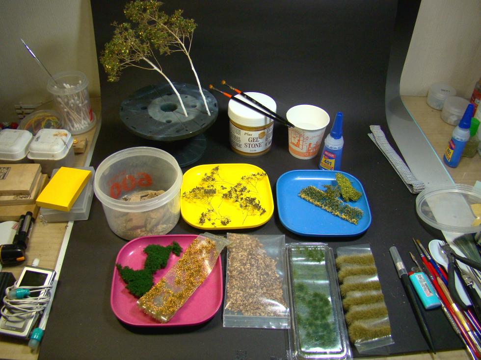 사진에 보이는 낙엽들(허드슨 &알렌제품)은 원색이어서 접착하고 나중에 브라운 락카로 엷게 뿌려 이질감을 없앴습니다.