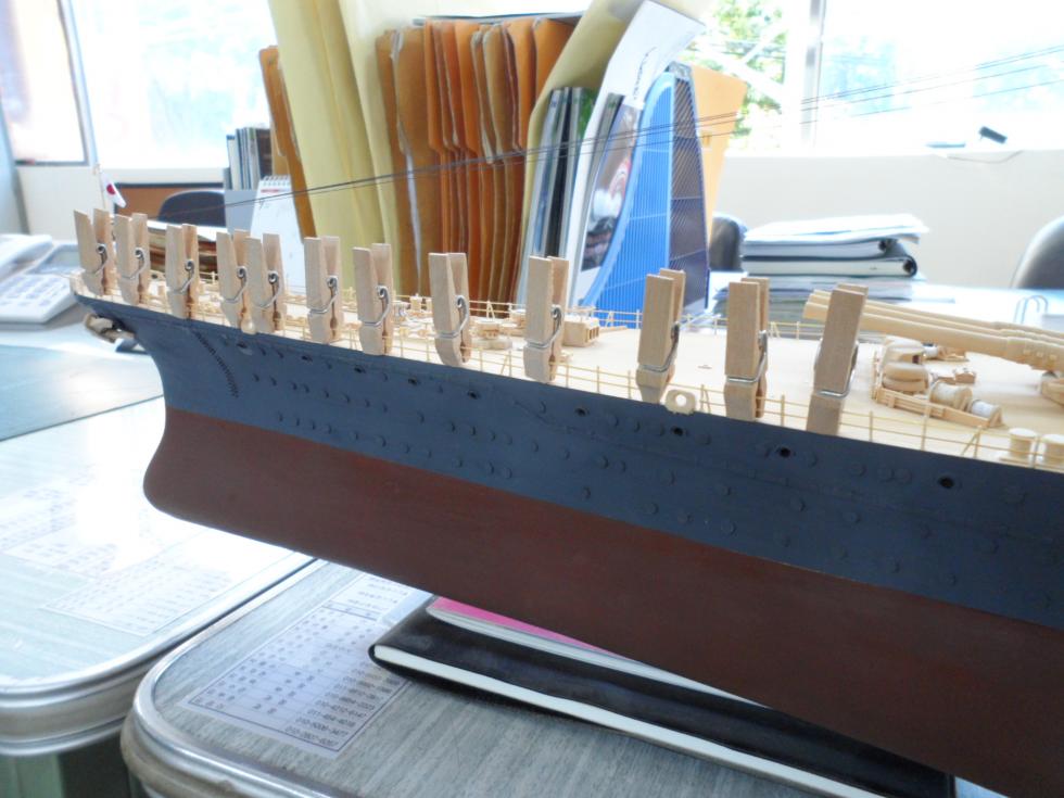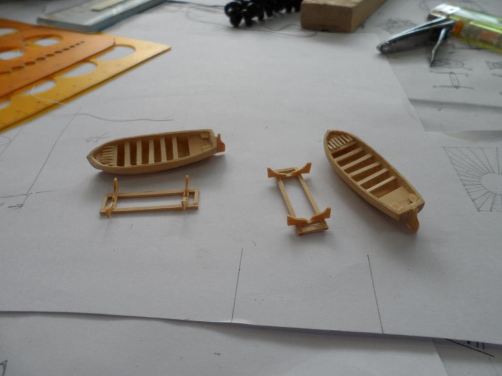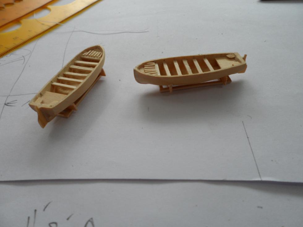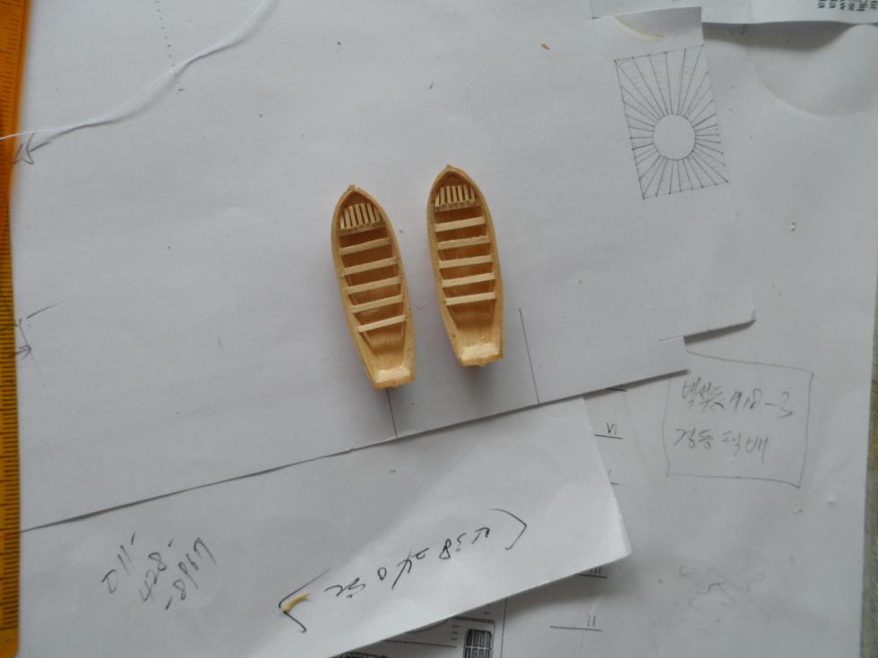 난간에 앞서 9m Cutter 2척을 만들어서 후갑판에 설치했습니다.