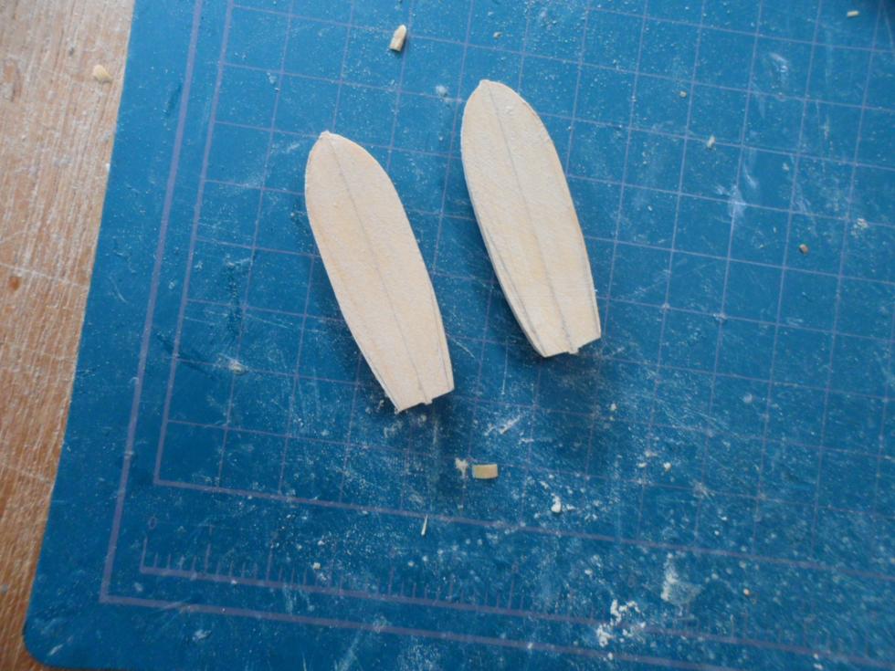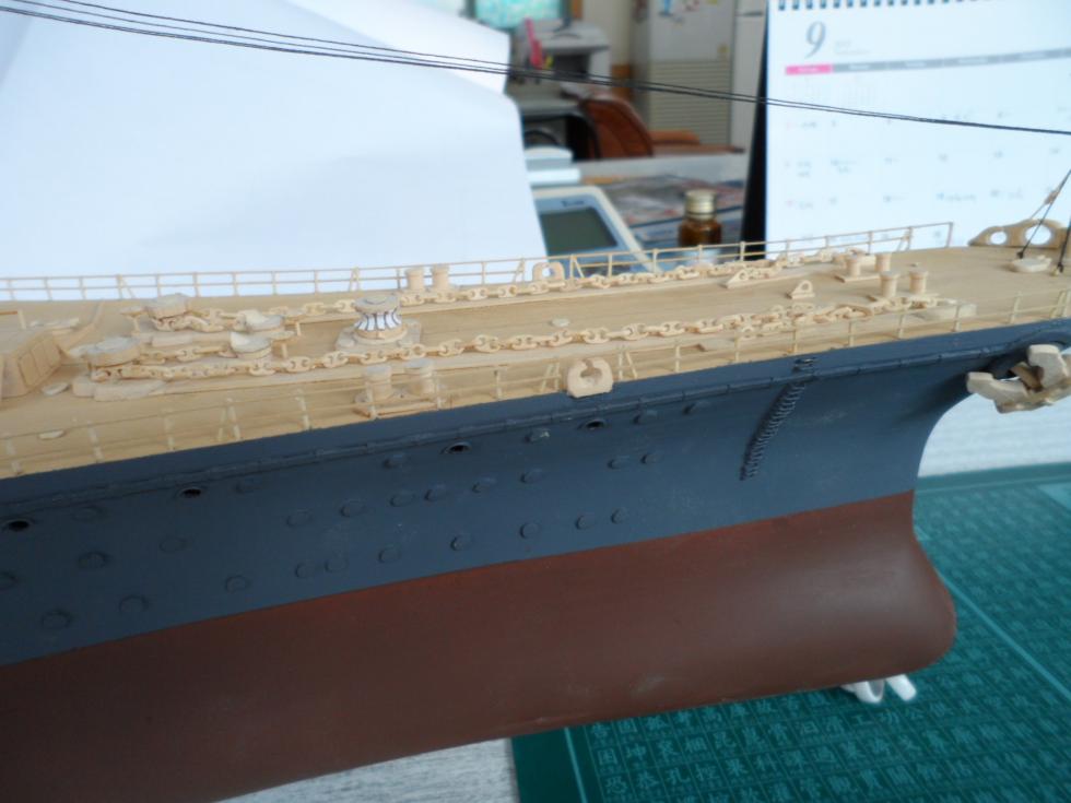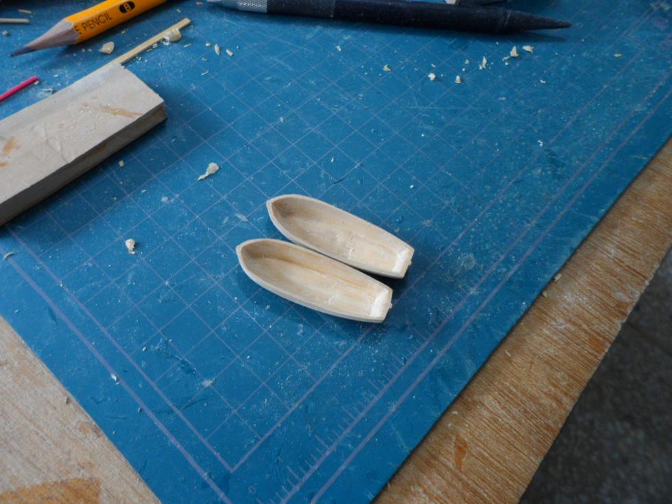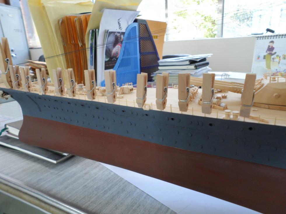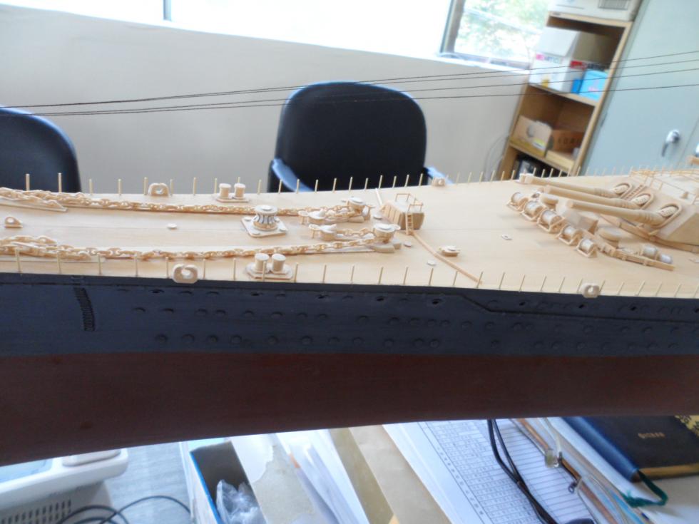 난간에 앞서 9m Cutter 2척을 만들어서 후갑판에 설치했습니다.