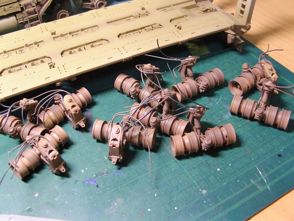 40여개의 타이어가 끼워질 휠들...및 현가장치.