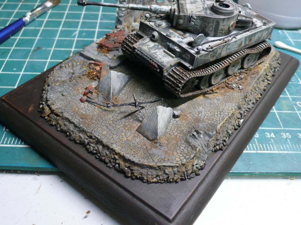 베이스 전체가 너무 회색 계통이라.. 포인트를 조금 줘 볼까 하는 생각에 붉은 벽돌 잔해를 조금 놓아보려고 추가 작업을 하였습니다.