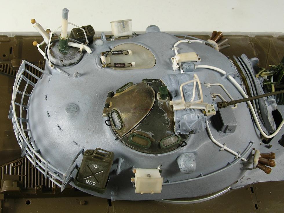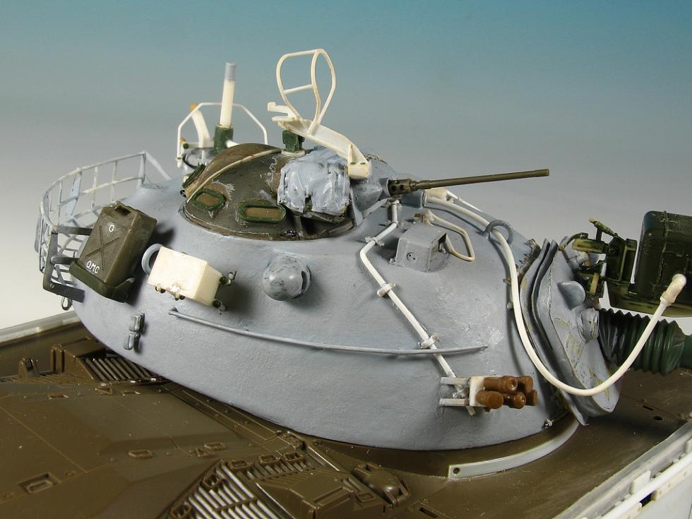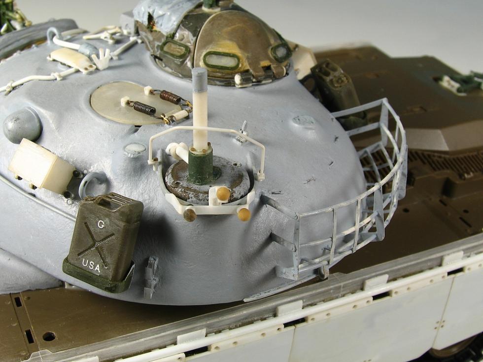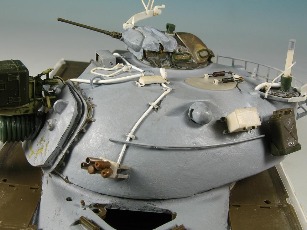 아카데미 M48A5K가 있지만 타미야 M48A3와 비교해 기본구조의 문제점이 많다 보니 타미야를 베이스로 선택했습니다. 아카데미 M48의 문제는 좁은 트랙과 그에따른 양쪽 측면 펜더의 넓이(폭)가 좁다는 것, 뒤쪽 엔진 배기구의 구조적 왜곡,기존 고무림사용을 바꾼 바퀴의 금형변경이 너무 거칠고,타미야 M48A3도 모터라이즈 구판의 한계성을 가지지만 기본 구조의 모양을 적절히 표현하고 있는데,아카데미 M48A5K는 조금씩의 왜곡과 생략이 좀 더 두드러진다고 보입니다.