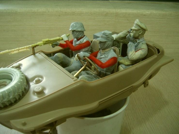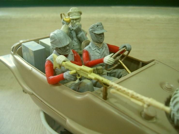 친위대 병사들로 앞좌석의 두명은 피-패턴 위장복에 운전병은 필드모를 쓰고 Kar 98k로 무장했고 조수석의 기관총 사수는 Stg44로 무장했습니다..