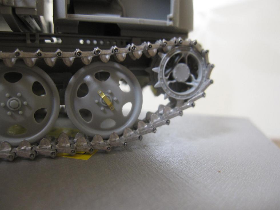 동계용 캐터필러를 걸고 다니는 지지대 구조물입니다. 에칭으로 된 부품이 포인트가 되어 줍니다. 흰 플라판 부품은 원래 에칭으로 'ㄷ'자 모양으로 접도록 설계되어 있는데, 자꾸 구부러져 모양이 제대로 안나와 H빔을 사용하였습니다.