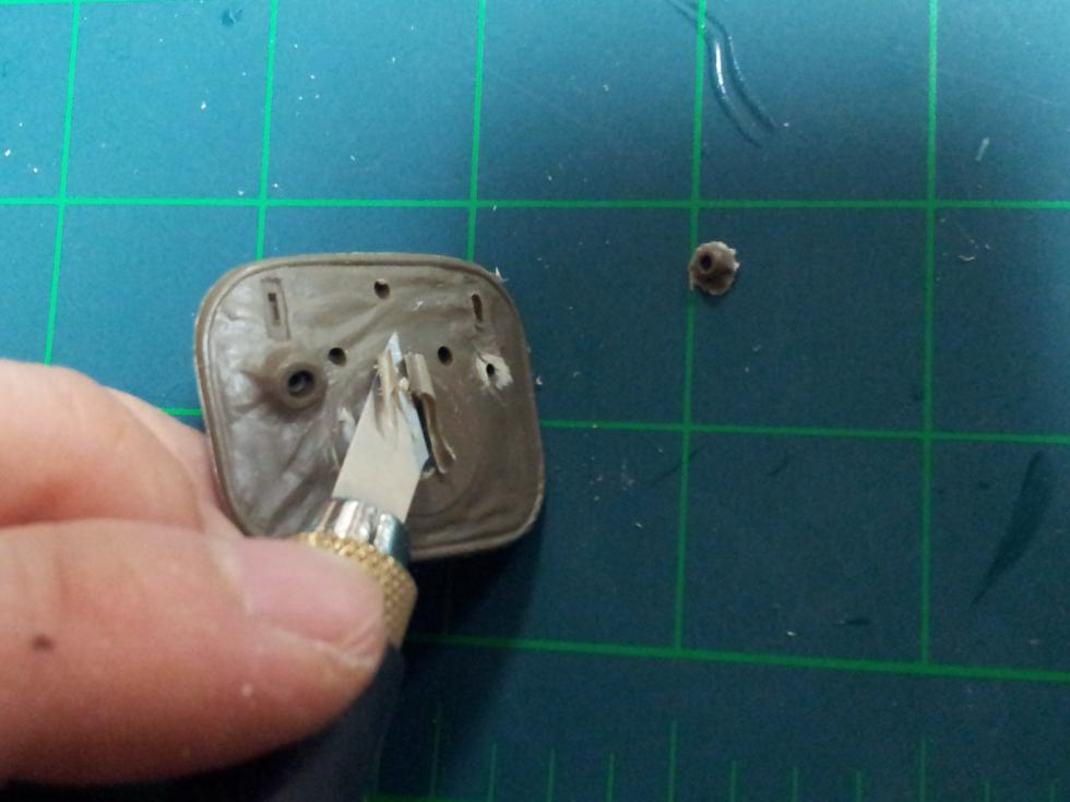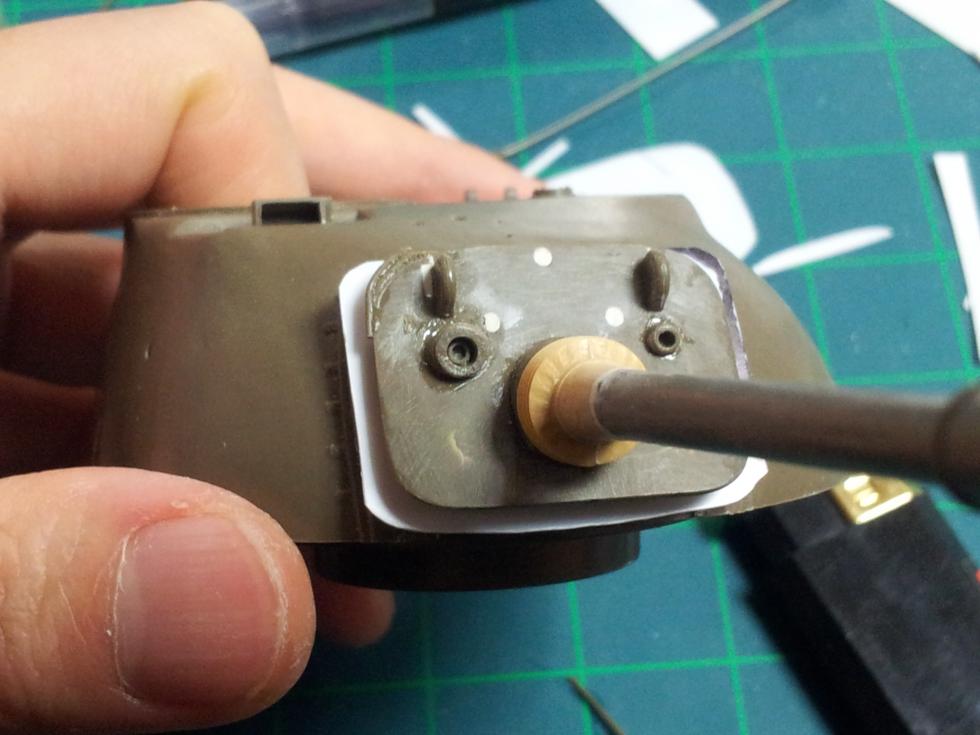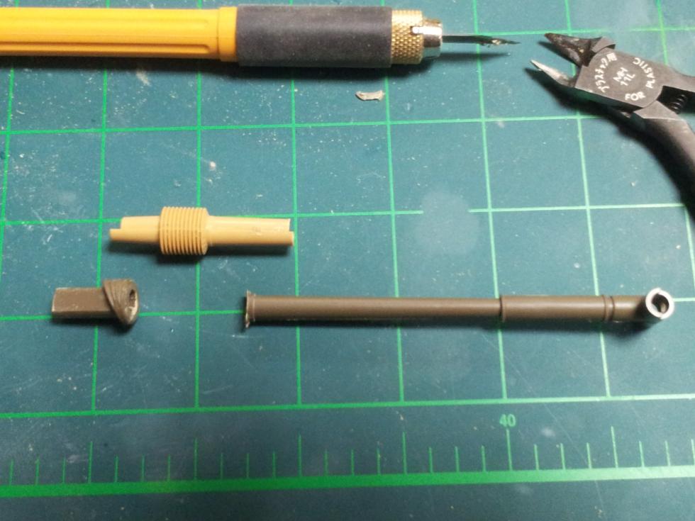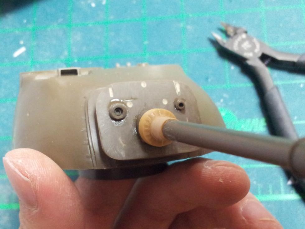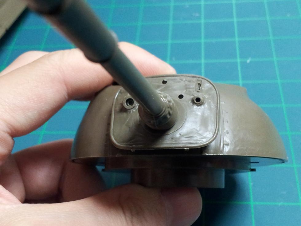 일단 포신기부의 돌출된 동그라미를 잘라내주고~ 줄과 사포등으로 수평이 되도록 갈아줍니다. 그 다음~