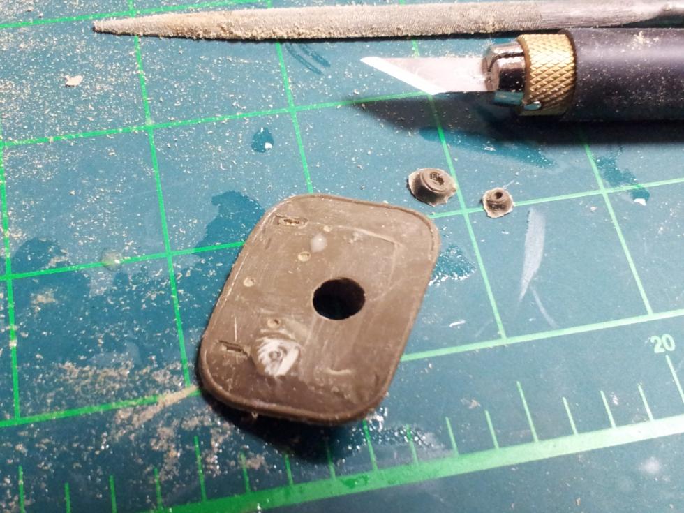 먼저 뼈대가 되는 방수포가 없는 포방패의 모습을 눈여겨 봅니다. 약간 둥그스럼한 사각형에 아주 약간의 곡면을 가졌으며 대체로 편평합니다. 타미야는 방수포를 씌운 모습을 재현하였지만 지금 기준으론 좀 어색하고, 양 눈(?)이 벌어져 있습니다 ㅎㅎ 아카의 포방패는 역삼각형에다가 곡면이 포탑형상에 맞게 과하게 휜 것 같은 느낌입니다.. 그래서 타미야의 것을 가지고 가공해 보기로 합니다!