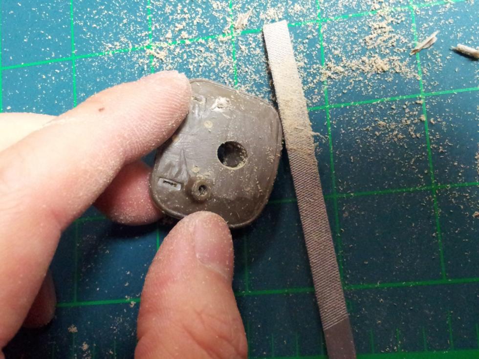 포방패 부분의 몰드가 사라지고 약간 곡면의 부분이 수평이 되도록 마구 갈아냅니다 (사진에는 조준경 부분이 붙어 있는데 작업하다가 저위의 사진처럼 잘라내고 작업했습니다)